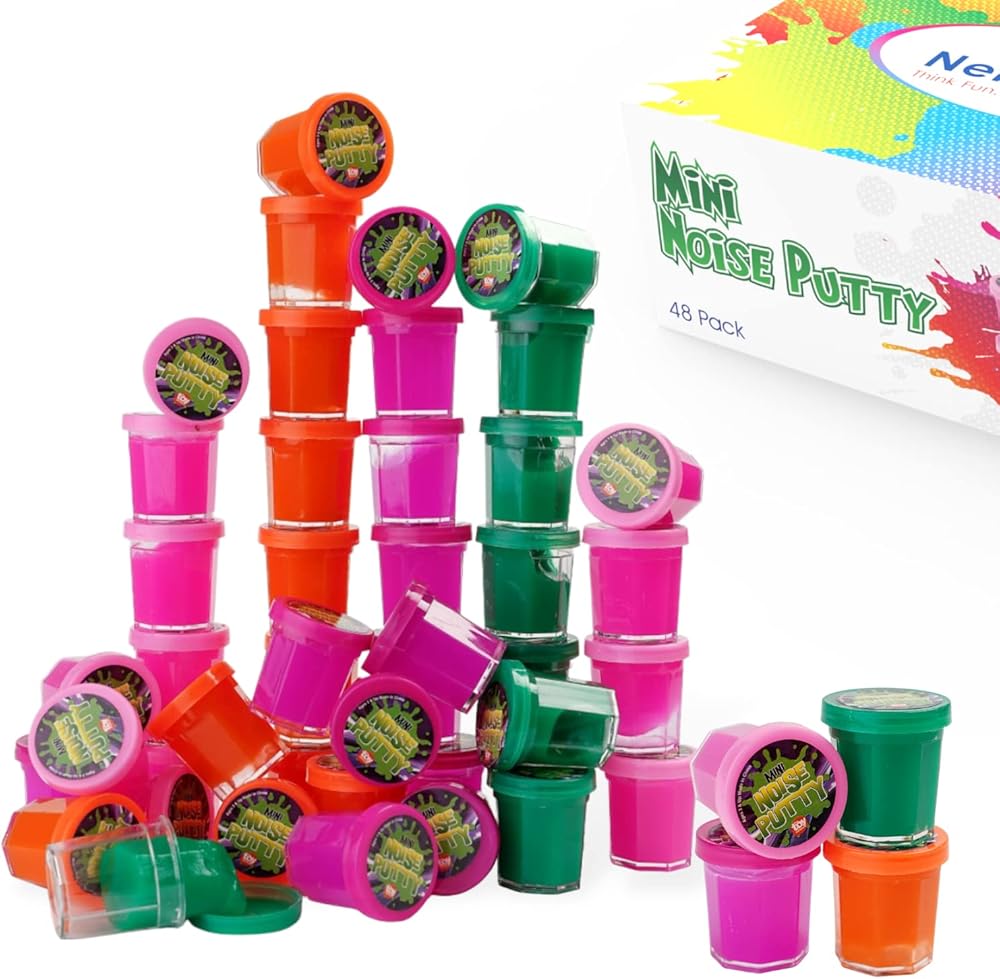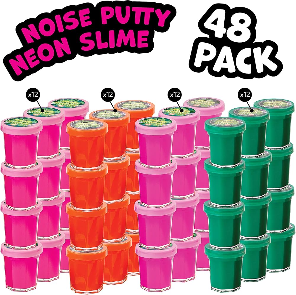 هدايا الحفلات للأطفال - عبوة من 48 قطعة من السلايم للحفلات الكبيرة - 1.5 بوصة - معجون ضوضاء صغير بألوان نيون متنوعة - ألعاب كبيرة - حشوات للجوارب - وهدايا حفلات أعياد الميلاد - عبوة كبيرة مكونة من 4 دزينة