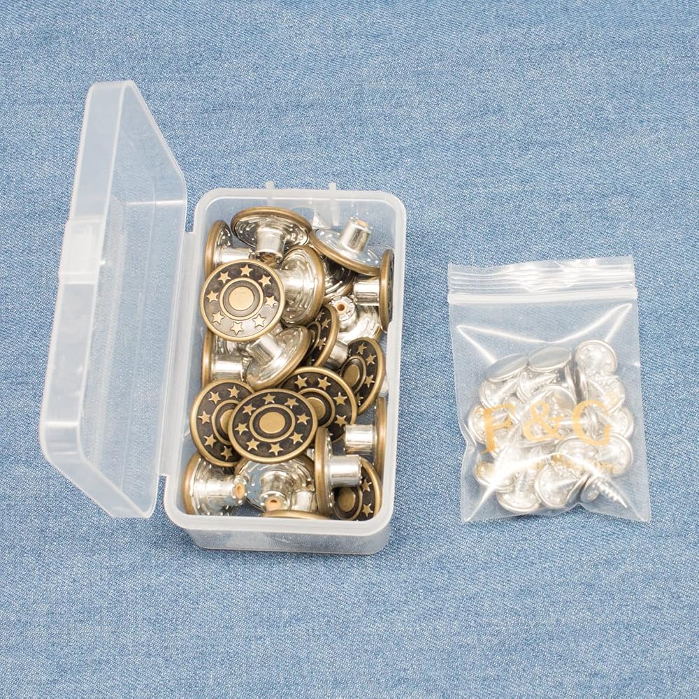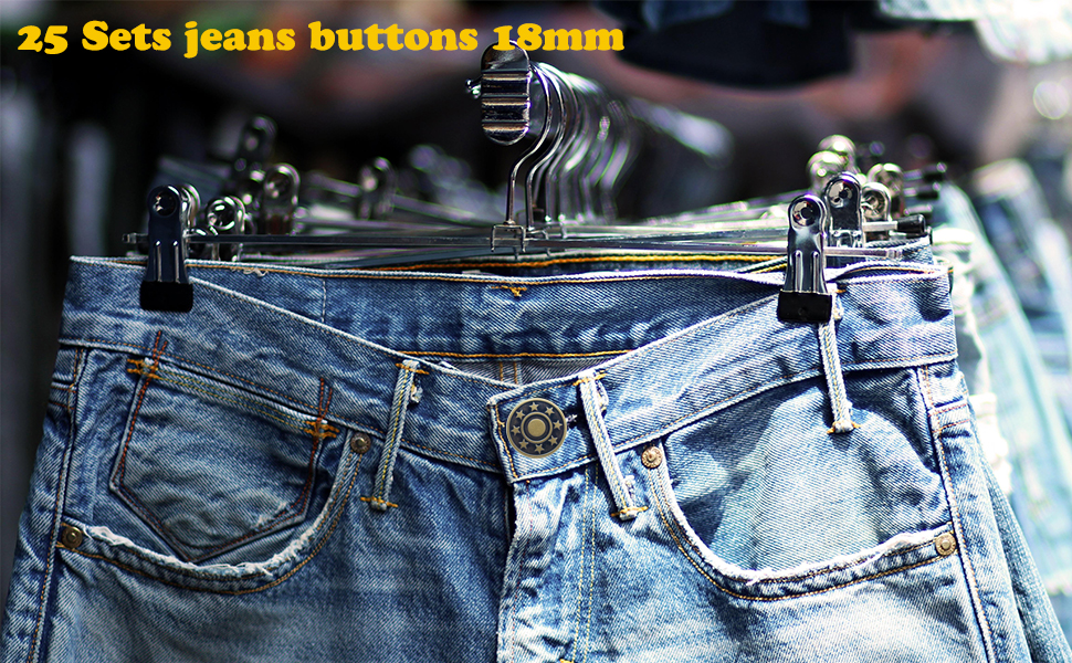 - الاستخدام: 25 زر جينز للقمصان والجينز والحمالات والسترات والحقائب والحرف الجلدية وغيرها من الأقمشة الثقيلة الوزن.