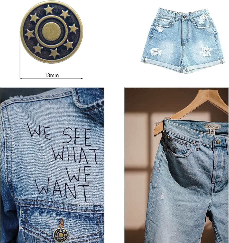 - أزرار الجينز مصنوعة من النحاس عالي الجودة مما يجعلها خالية من الصدأ والتآكل