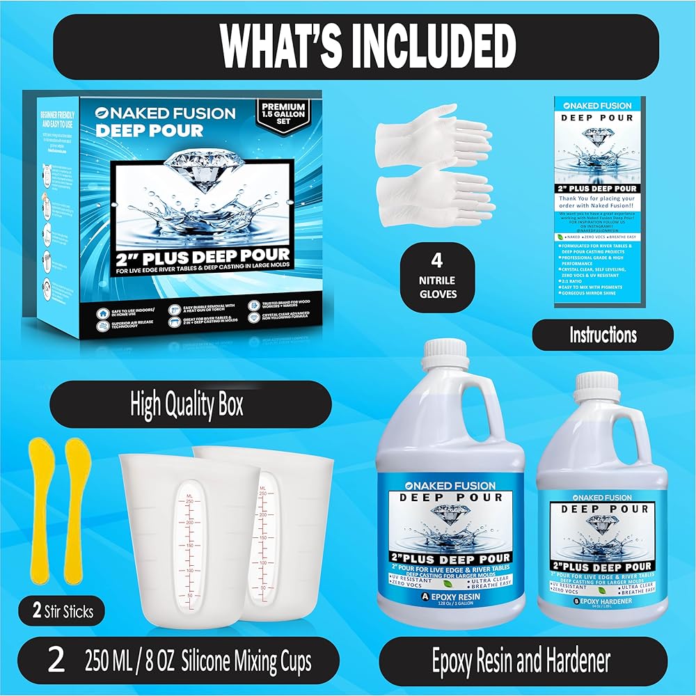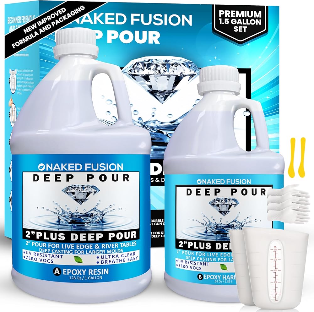 ديب بور إيبوكسي راتنج بسمك 5.08 سم تم تركيبه خصيصًا لطاولات النهر والطاولات الحية للحواف والصب العميق والمشروعات الفنية العميقة. رائعة لقوالب الحجم الصغير إلى الكبير ، الوقايات ، بيتريس ، حشو الفراغات ، قوالب هرمية كبيرة والأشياء المغلقة. تم تصميم الراتينج العميق من نيكيد فيوجن من أجل الصب 5.08 سم بالإضافة إلى سمك في صب واحد.
