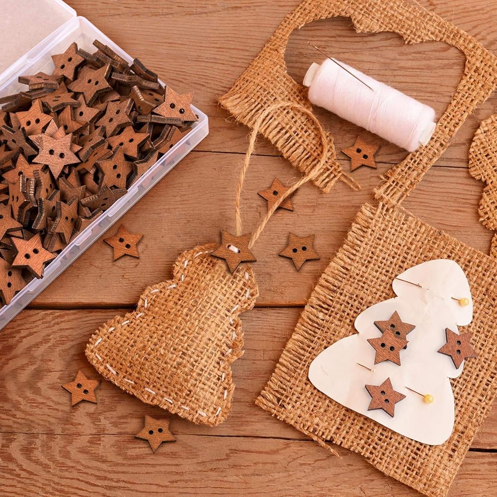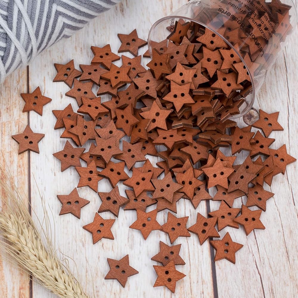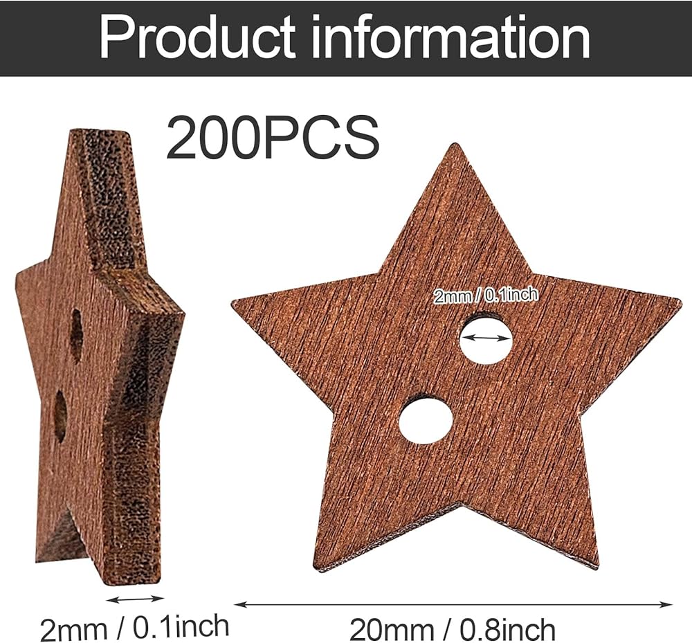 اسم المنتج: 200 قطعة من أزرار النجوم الخشبية، 2 فتحة لدفتر القصاصات الحرفية زر صغير لتزيين المشاريع الفنية التي تصنعها بنفسك