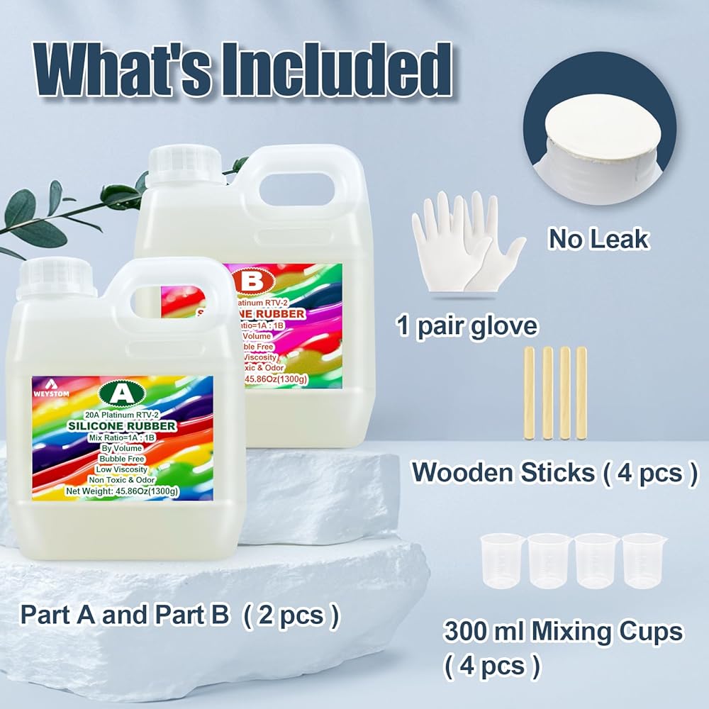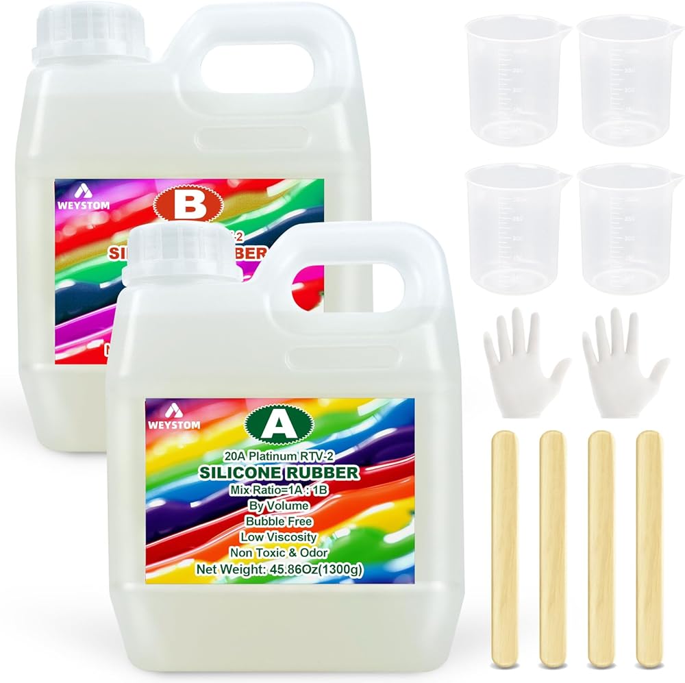 مجموعة صنع قوالب السيليكون: تشتمل المجموعة على 600 مل / 30.33 أونصة (بالوزن) من مطاط السيليكون، و4 أكواب متدرجة، و4 أعواد تقليب، وزوج من القفازات المطاطية، ويتم تعبئتها بتصميم فريد لضمان شحن المنتج إليك سليمًا.