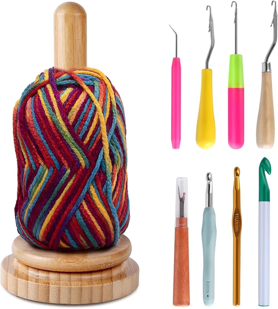 - يساعد حامل الخيوط الدوارة الخاص بنا على توفير الوقت والجهد من فك تشابك الخيوط وبالتالي زيادة سرعة الكروشيه أو الحياكة.