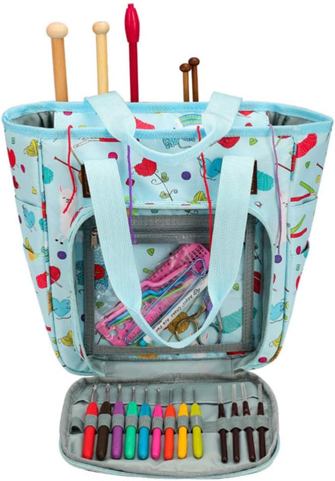- حقيبة مثالية لحمل جميع أدوات الكروشيه والحياكة. حقيبة تخزين الحياكة
