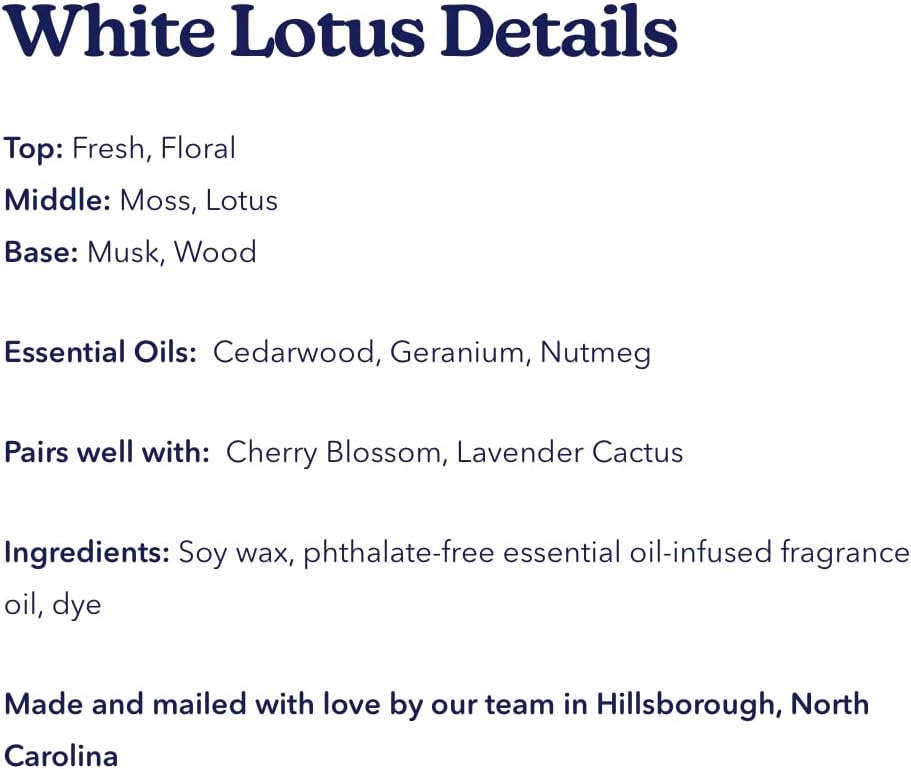 نحن نصنع شمع لا يُنسى مصنوع من شمع الصويا الطبيعي، غني بالزيوت العطرية وخالي من الفثالات. صُنع بحب في هيلزبورو بولاية نورث كارولينا.