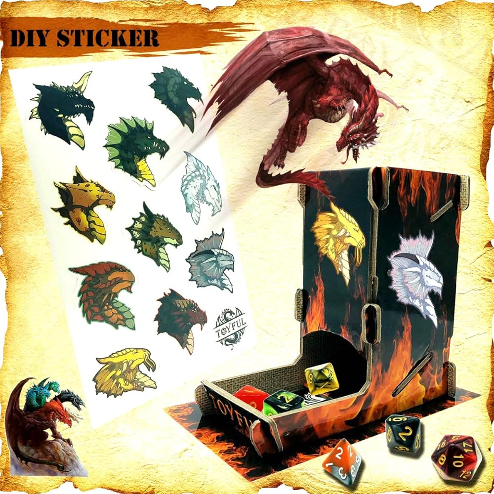 • تتضمن ملصقات التنين: تتضمن 10 قطع من ملصقات التنين، يمكنك صنع برج النرد الخاص بك ولفة النرد بأناقة مع مجموعة برج النرد الحصرية هذه