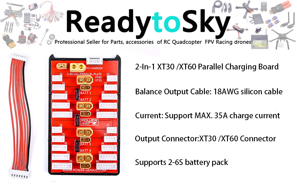 لوحة شحن متوازية 2 في 1 XT30 XT60 RC من Readytosky لوحة شحن متوازية XT30 XT60 تدعم 4 عبوات لبطارية الليثيوم بوليمر 2S-6S