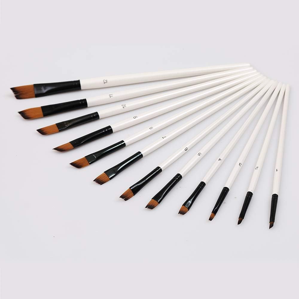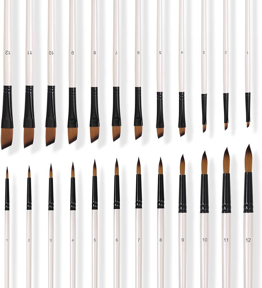 فرش رسم هوم إيدج، 24 قطعة من فرشاة طلاء الأكريليك المصنوعة من النايلون للألوان المائية والأكريليك والقماش والأظافر، مناسبة للفنانين والأطفال والفصول الدراسية ورأس مسطح + طرف