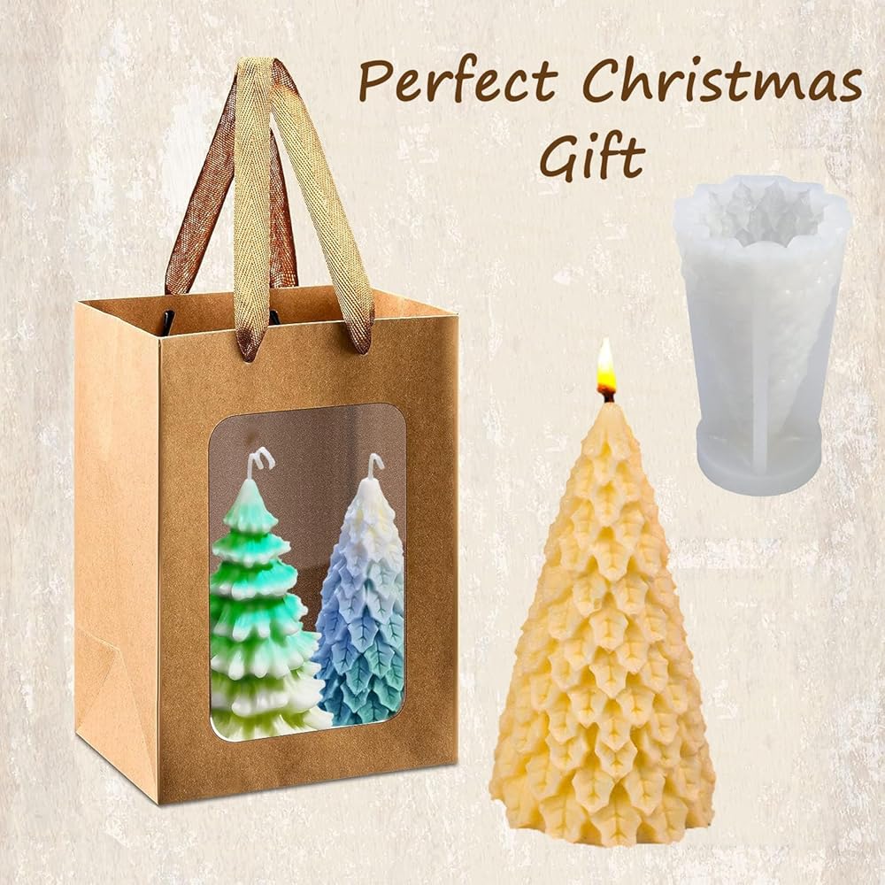 قالب شموع شجرة عيد الميلاد ثلاثي الأبعاد، قطعتان من قوالب السيليكون لشمعة عيد الميلاد، قالب راتينج مصنوع يدويًا لصنع الشموع، قالب صابون، لتزيين المنزل كهدية عيد الميلاد