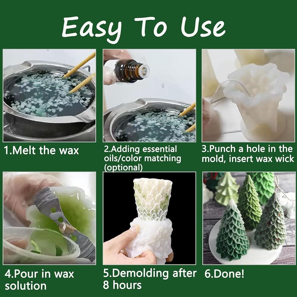 صناعة يدوية مضحكة: يمكنك إضافة لمعان، وأصباغ، وزهور مجففة، ومسحوق الميكا، ورقائق الذهب إلى الشمعة الذائبة، وصنع حرفة شجرة عيد الميلاد الفريدة الخاصة بك.