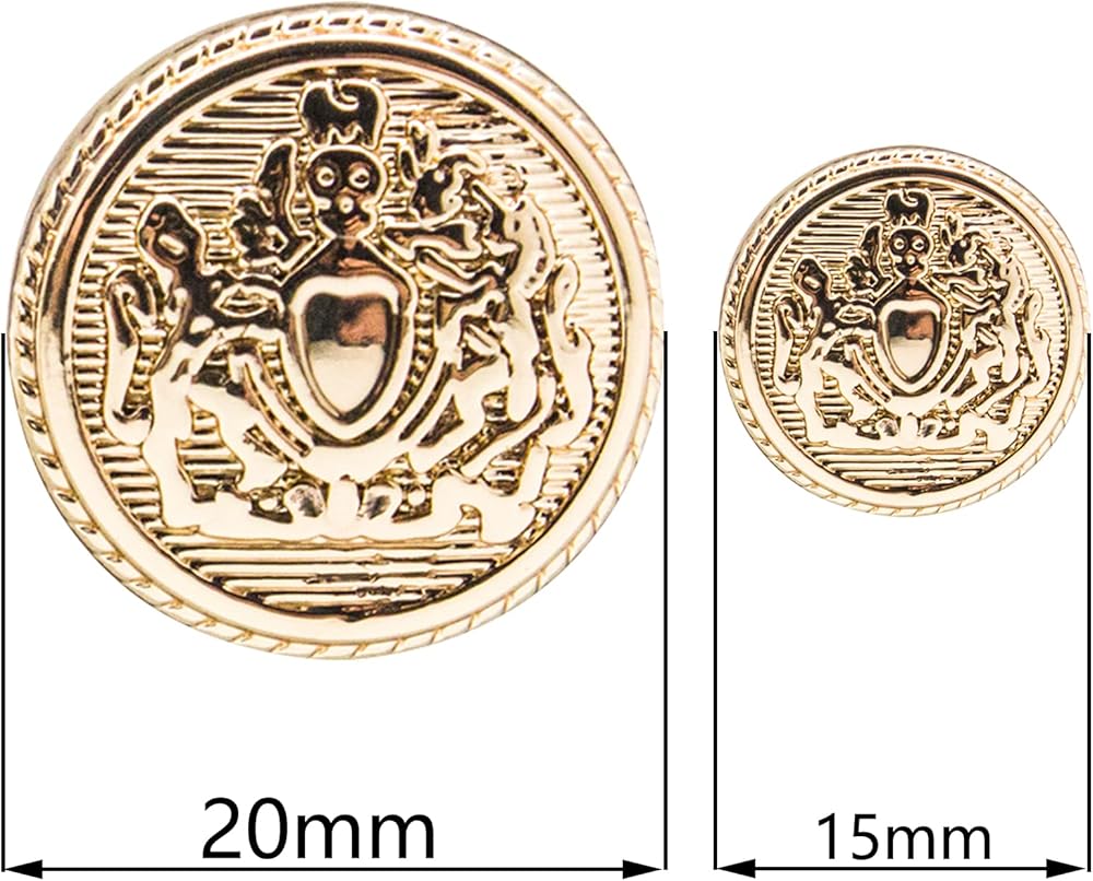معلومات المقاس: يبلغ مقاس زر الخياطة المعدني 20 ملم (المقاس الأكبر) و15 ملم (الأصغر)