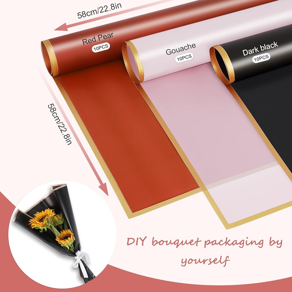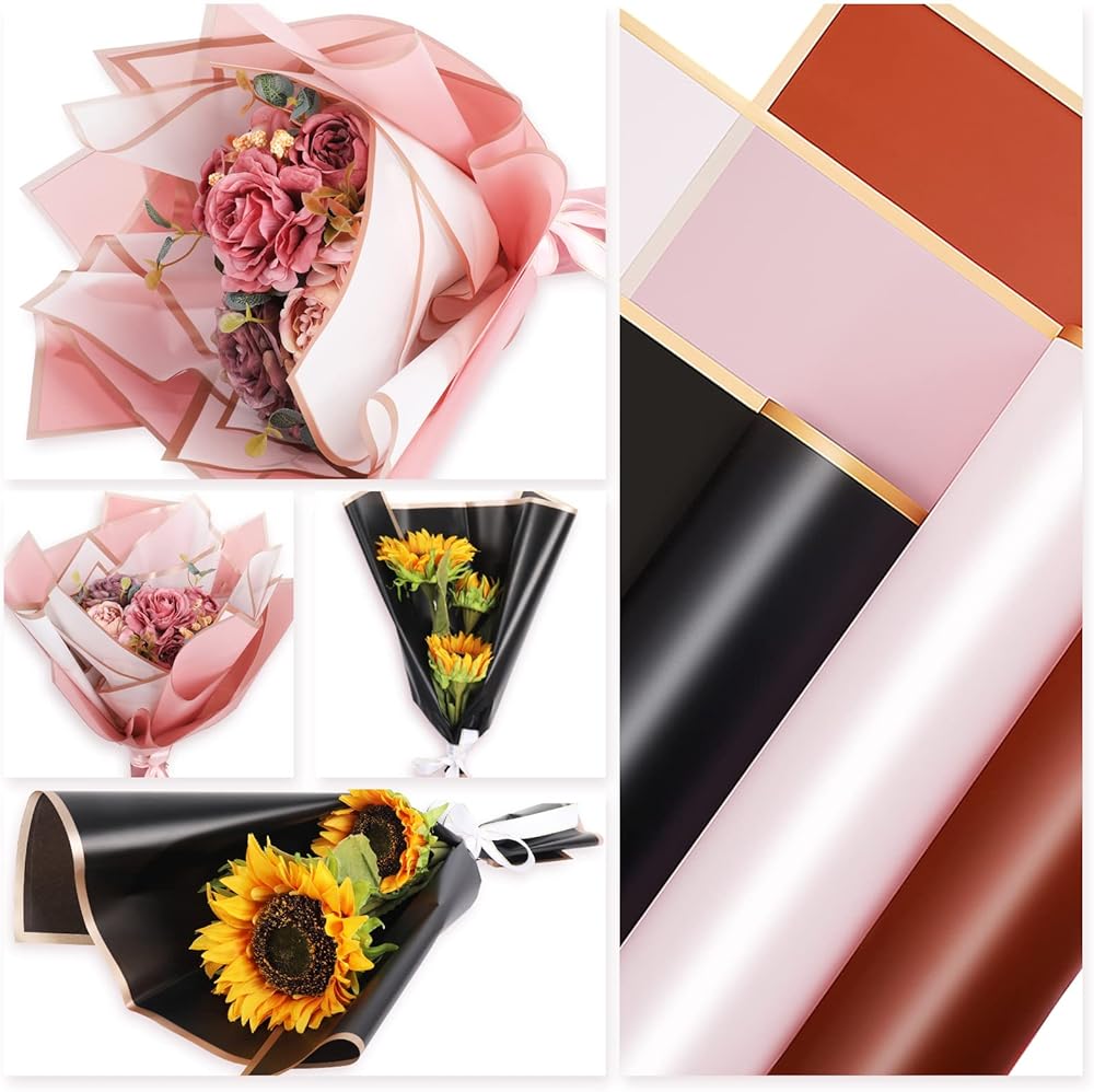 Double-Sided Beauty – All the floral wrapping paper are colored in both two sides, they have pale pink, black and red color with beautiful golden border, you can use different colors to match the flowers, beautiful and delicate.