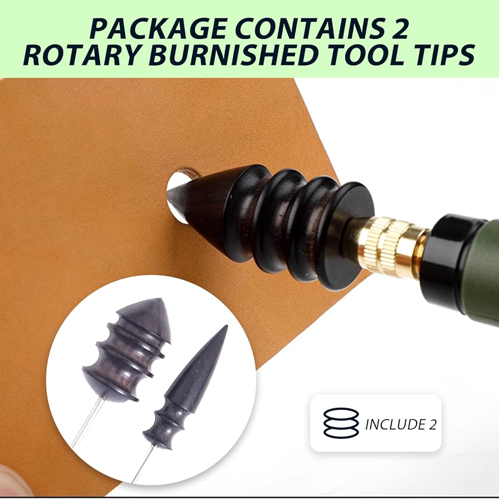 Each package contains two leather rotary burnished tool tips, giving you the necessary tools to achieve polished finishes on your leather creations. Whether you're working on belts, bags, wallets, or other leather items, our burnisher bits are essential additions to your leatherworking toolkit.