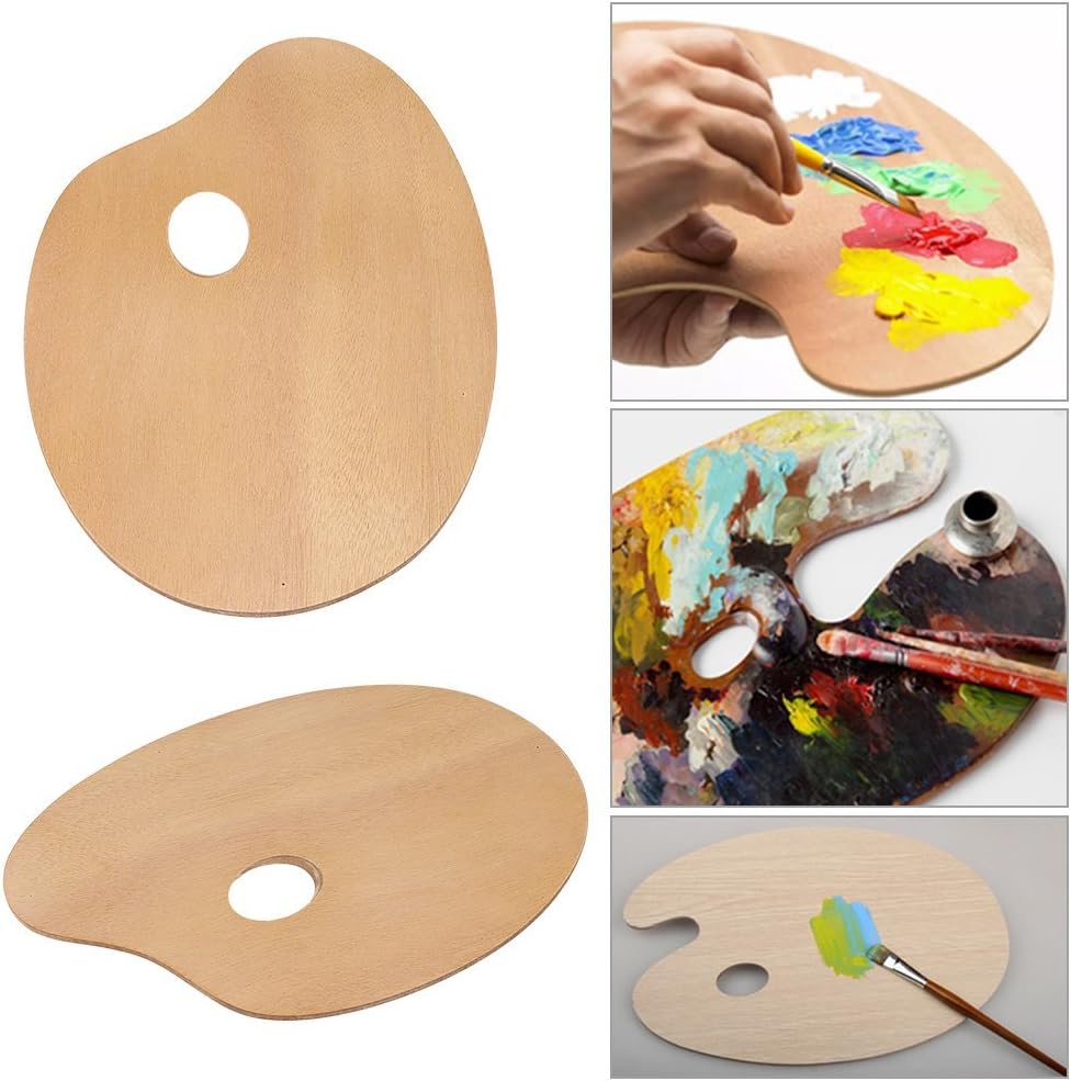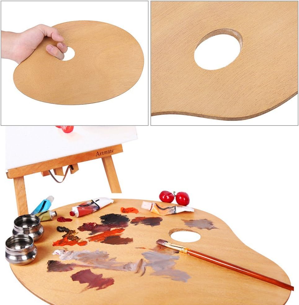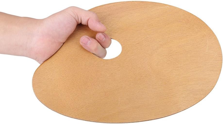 لوحة رسم خشبية، لوحة خشبية بيضاوية الشكل للفنان العتيق مقاس 20 × 30 سم، صينية طلاء خشبية/أكريليك، أداة رسم خشبية