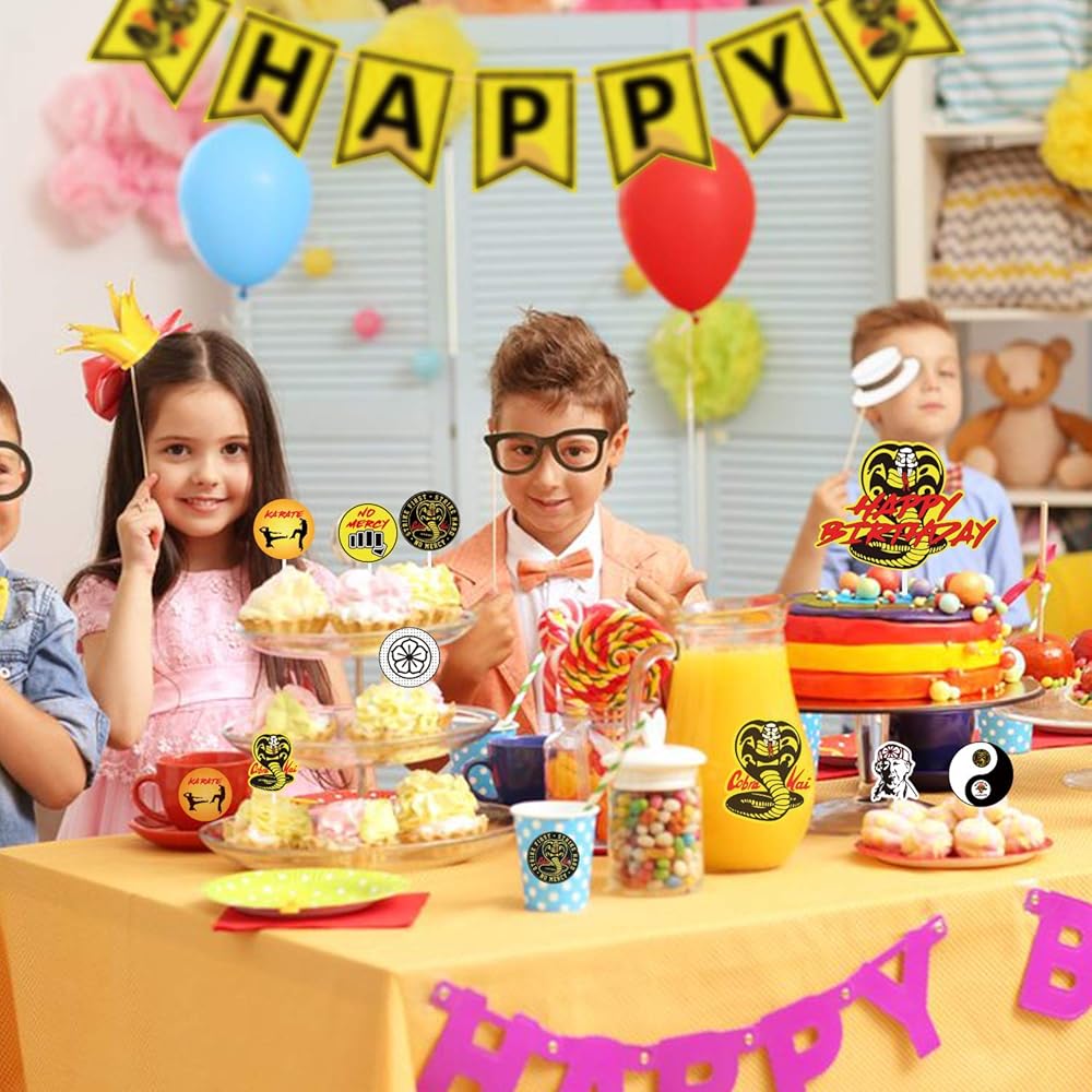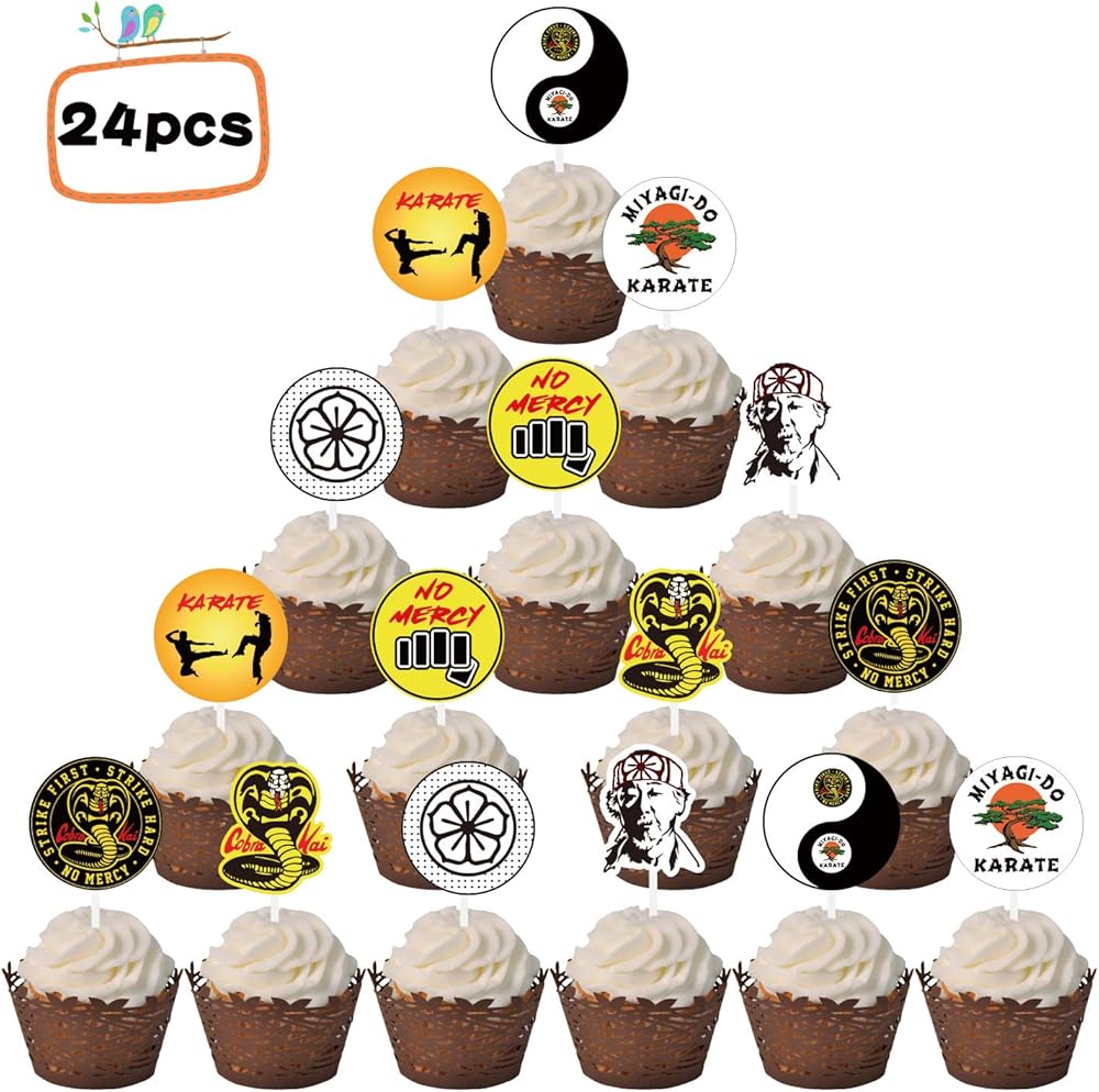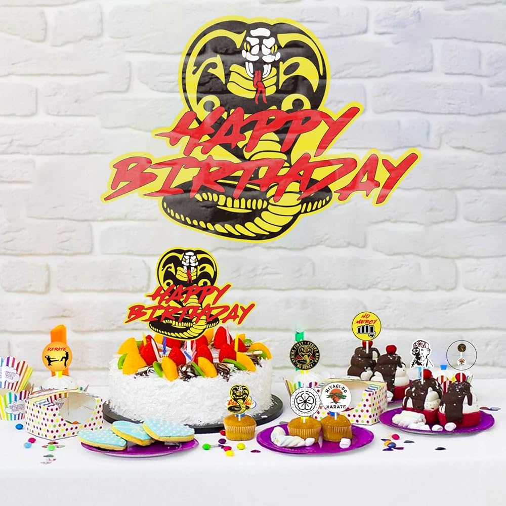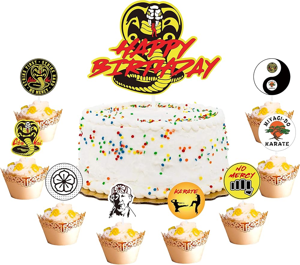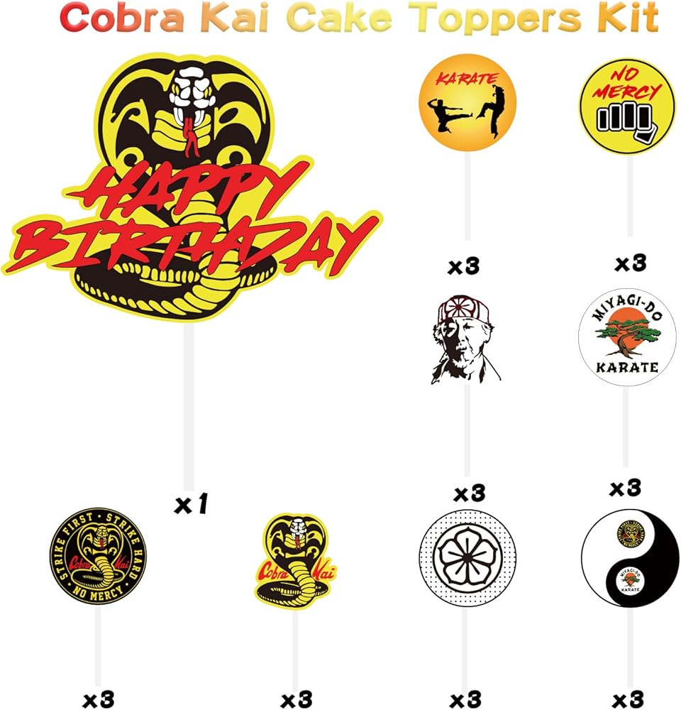 Eartim 25 Pack Cobra Kai Cake Toppers Decoration Supplies Kit