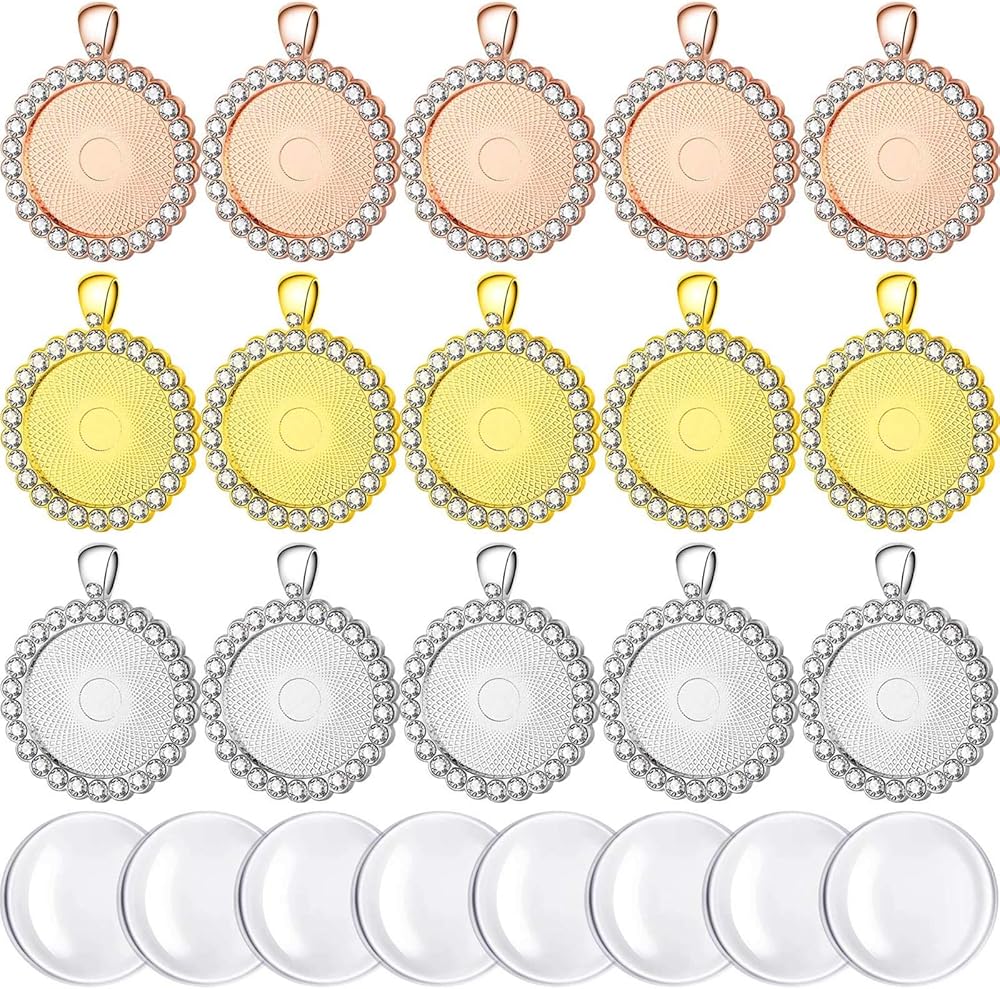 30 قطعة من صواني الدلايات المصنوعة من حجر الراين من خليط معدني مع كابوشون زجاجي شفاف لصنع المجوهرات بنفسك، 3 ألوان (ذهبي، فضي، ذهبي وردي)