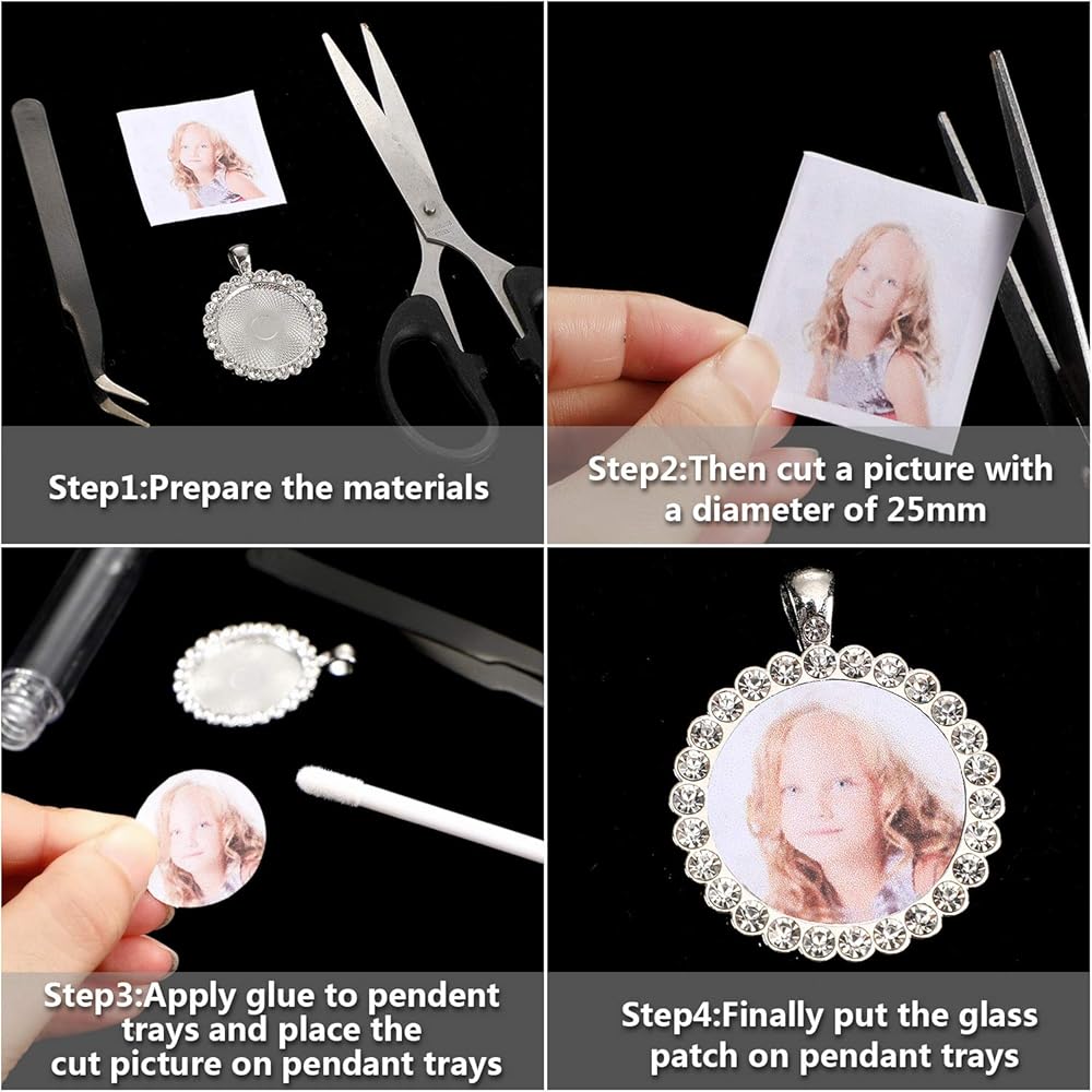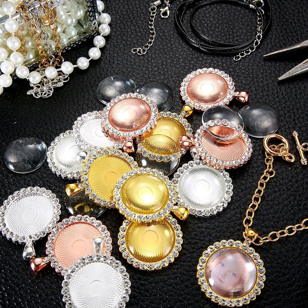 هذه الصواني المتدلية ذات الإطار المصنوع من حجر الراين سهلة الاستخدام، فقط قم بلصق النمط الذي تريده في صينية القلادة، ثم قم بتغطيتها بالكابوشون الزجاجي الشفاف، قم بتعليق القلادة على السلك أو السلاسل الأخرى، وستنتهي القلادة الجميلة.