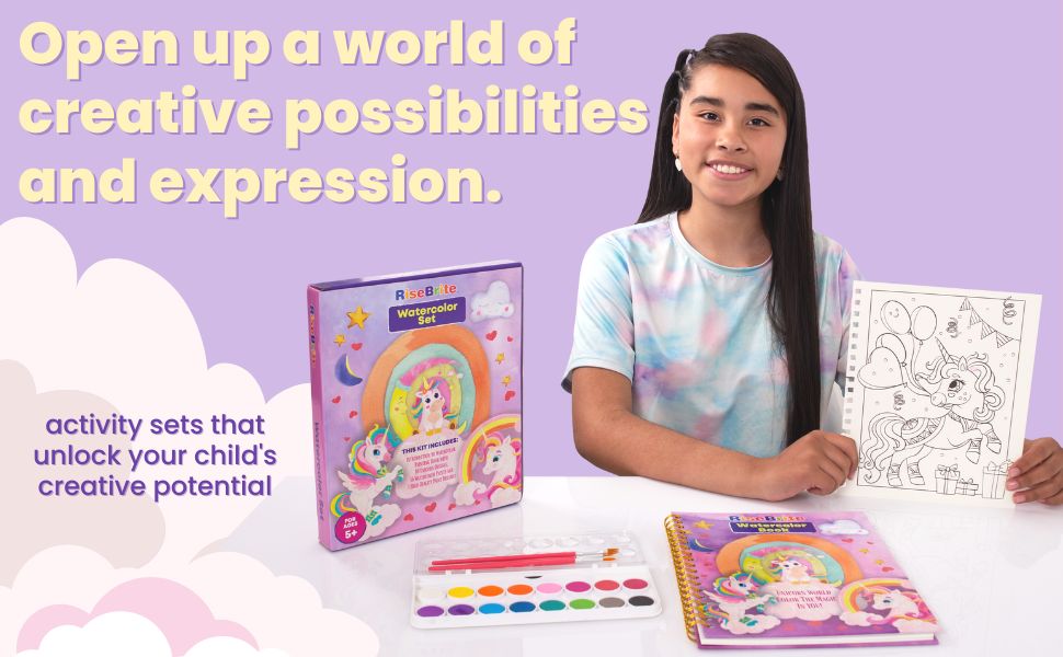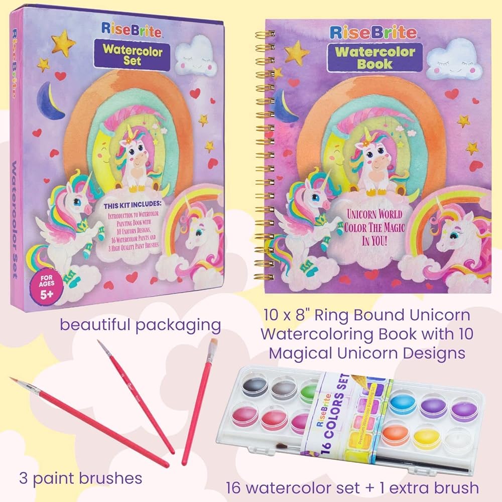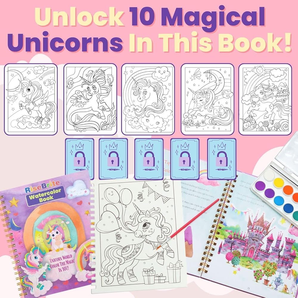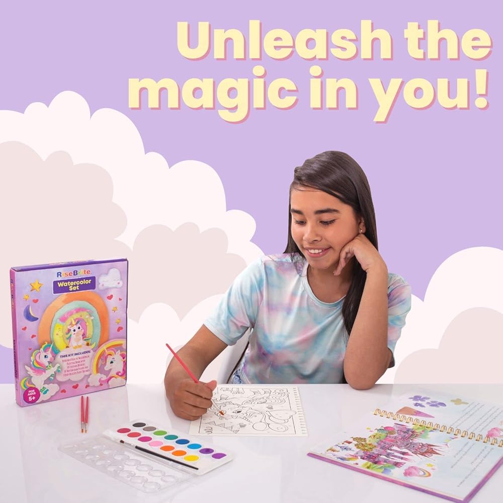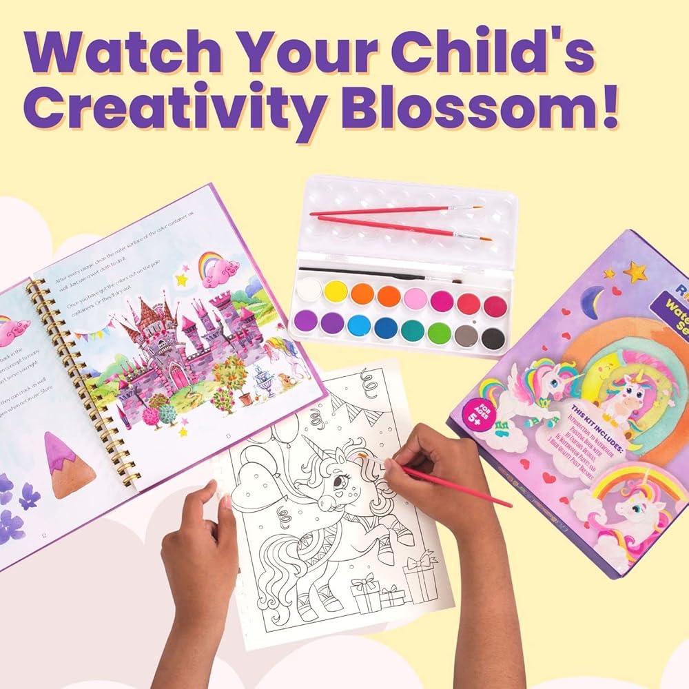 - مجموعة ألوان مائية يونيكورن للأطفال - تصميمات يونيكورن لطيفة وصعبة لتجربة سحرية!