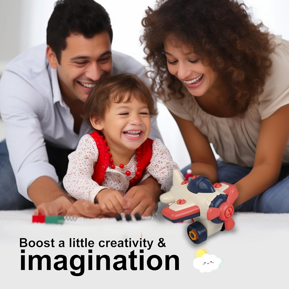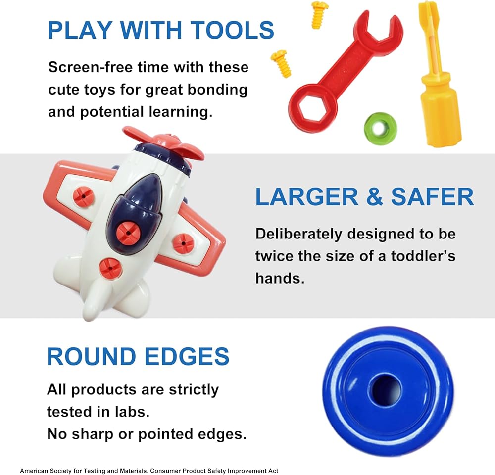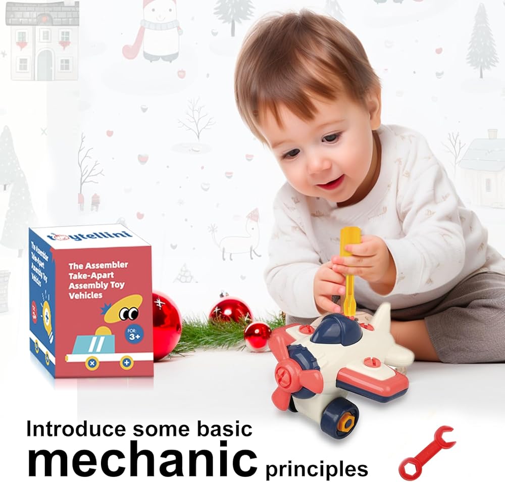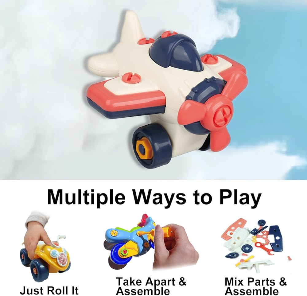 ألعاب تجميع تفكيك المجمع، ألعاب أدوات بناء العلوم والتكنولوجيا والهندسة والرياضيات مع براغي مفتاح الحفر، بطارية ميكانيكية للأطفال الصغار، لعبة طائرة للأطفال الصغار من سن 2 إلى 6 سنوات (طائرة)