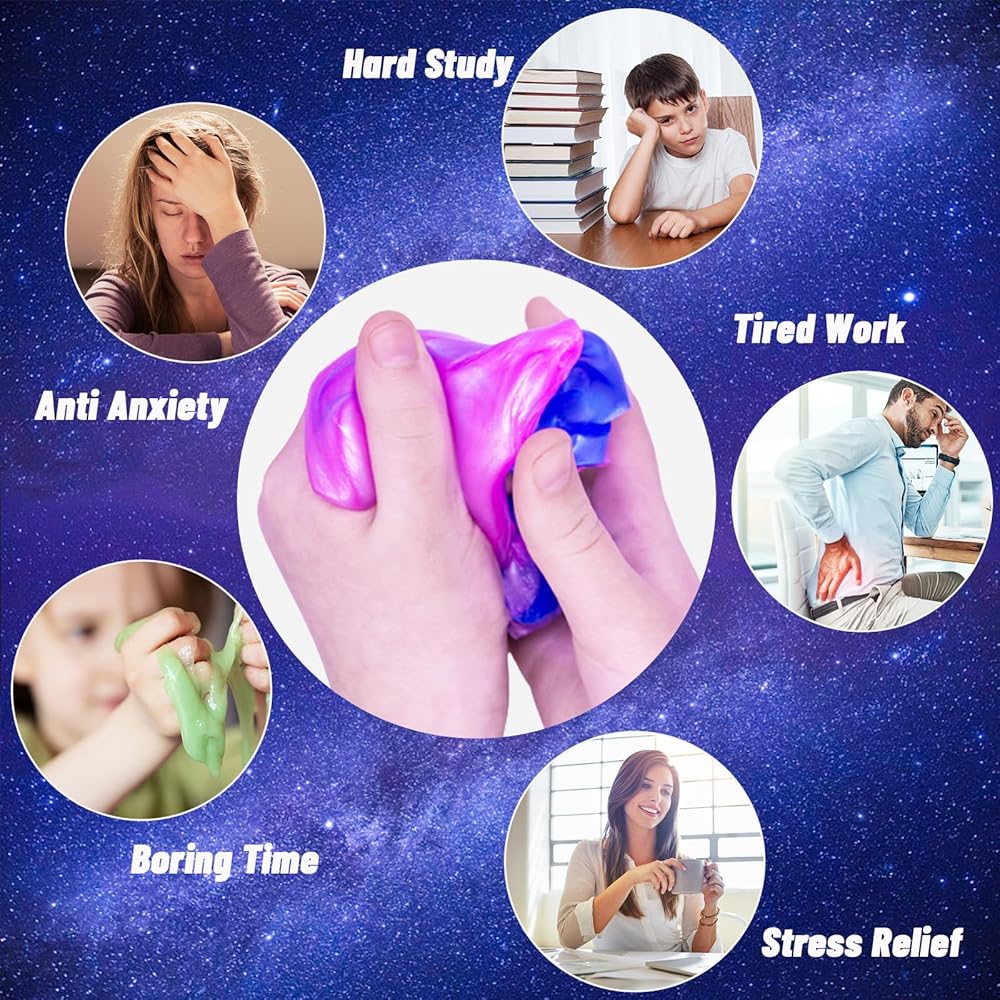 جالاكسي سلايم: سلايم جالاكسي ناعم ورطب وقابل للتمدد، يمكن للأطفال تمديد السلايم أو الضغط عليه حسب الرغبة. كرات السلايم الخاصة بنا مصنوعة من مواد غير لزجة عالية الجودة، آمنة للأطفال للعب بها ولن تترك أي بقايا على الأطفال الأيدي والملابس، العب بثقة!