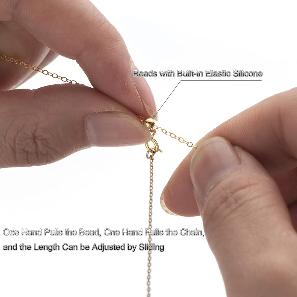 سلسلة ممتدة بتصميم فريد: مصممة لإطالة القلادة والقلادة والسوار والخلخال والمجوهرات الأخرى. يمكن تعديل الطول حسب الرغبة عن طريق تحريك الخرز باستخدام السيليكون المرن المدمج. قم بتمديد قلادتك أو سوارك حتى 75 ملم تقريبًا (2.95 بوصة).
