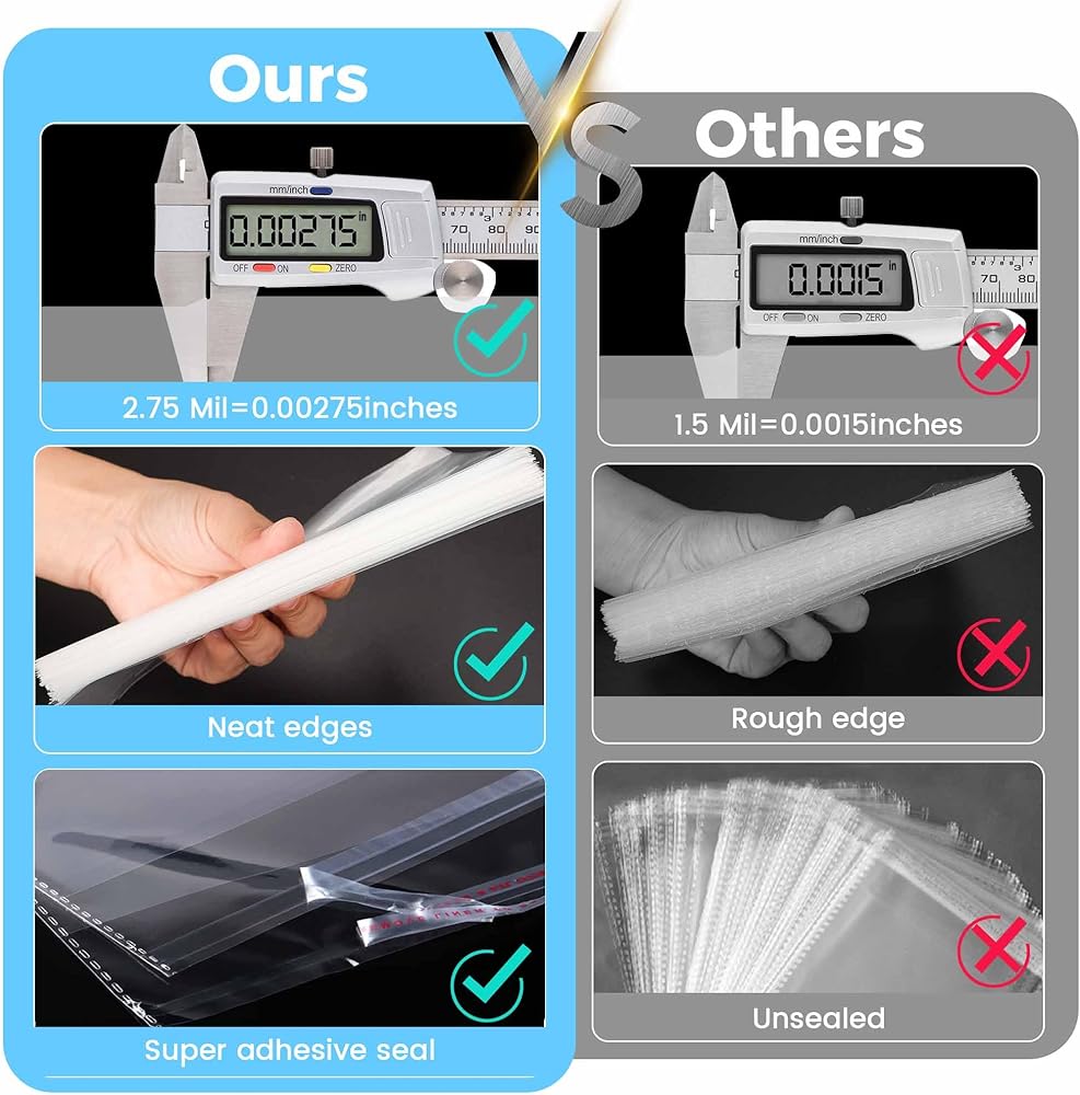 جودة عالية: أكياس ملابس شفافة ذاتية اللصق مصنوعة من البلاستيك الفاخر مع جوانب معززة لضمان عدم انقسام أكياس السيلوفان بسهولة عند الاستخدام. تتميز أكياس البوليستر البلاستيكية القابلة للإغلاق بأنها شفافة من الأكياس البلاستيكية المصنوعة من البولي بروبيلين، وأكياس التشيلو الكبيرة تتميز بالوضوح المتميز الذي سيجعل الهدية تقدم تأثيرات جميلة وأنيقة.