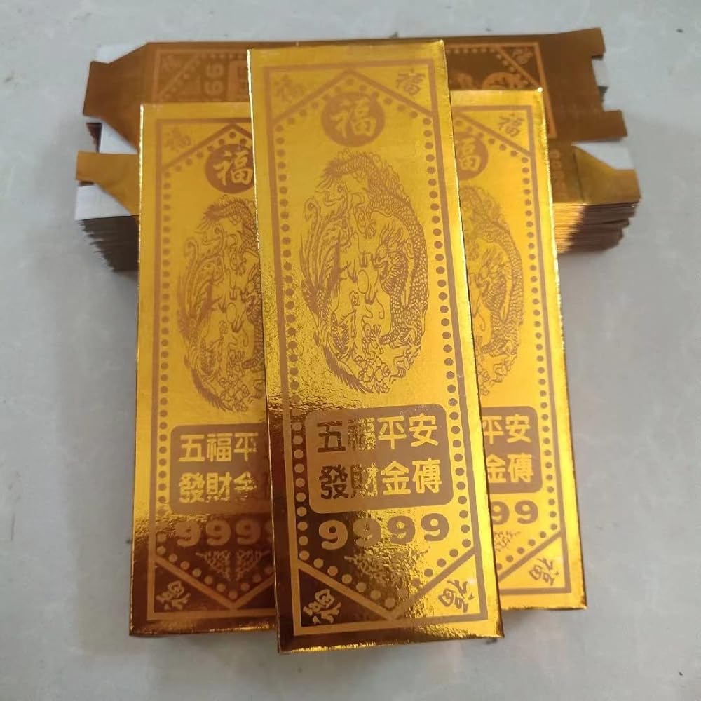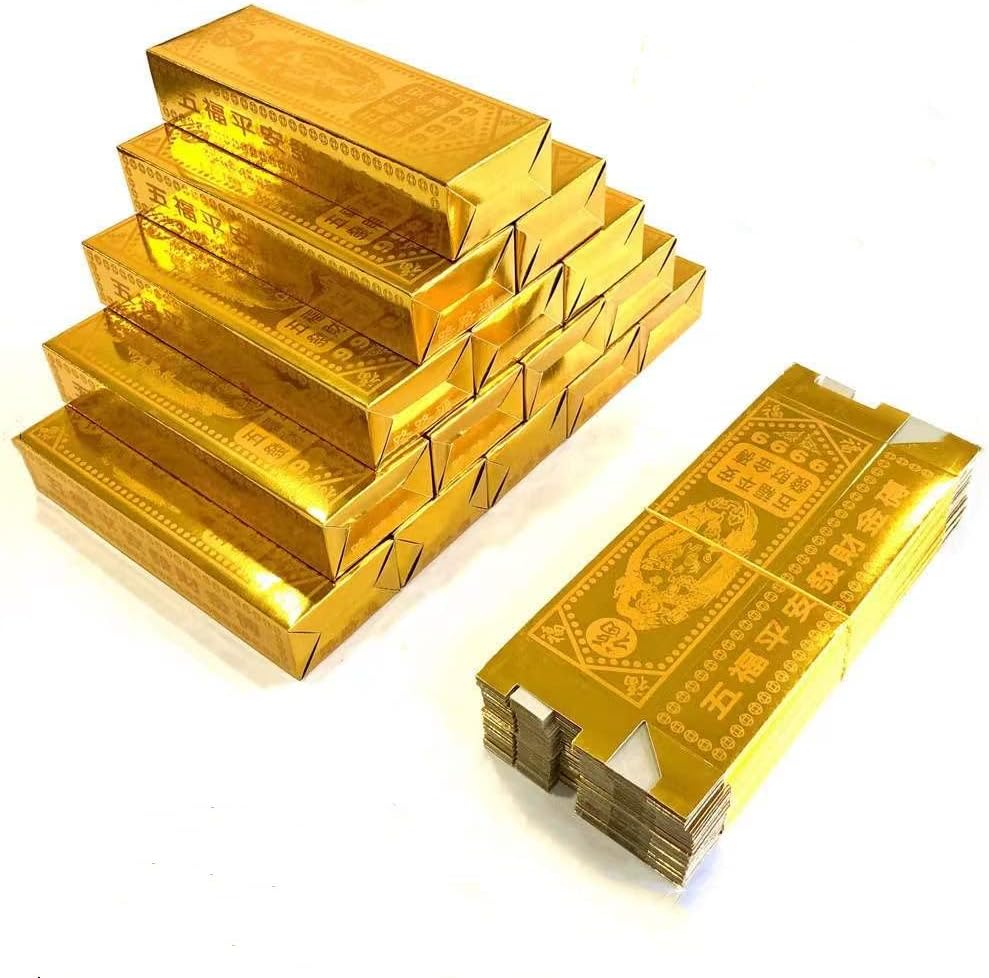 المنتجات عبارة عن منتجات نصف نهائية، ومن الأفضل طيها لتصبح مكعبات ذهبية. إذا لم يكن لديك وقت لطي الطوب الذهبي، فلا يهم أنه يمكنك حرقها مباشرة، سيقوم أسلافك بطيها عند الحصول عليها. ملاحظة: انتبه إلى سلامة النار عند حرق النقود الورقية الصينية، رائحة القرابين قليلاً عند الاحتراق، يرجى حرقها في الفتحات أو في الهواء الطلق!