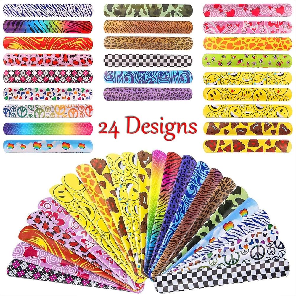 • يشتمل على: أساور متنوعة للحفلات هذه تتضمن 100 سوار صلاب تحتوي على ثلاثة من كل لون من 24 لونًا ونمطًا و28 لونًا ونمطًا عشوائيًا. تشمل الأنماط القلوب، وعلامات الخوخ، والحيوانات والأنماط الهندسية.