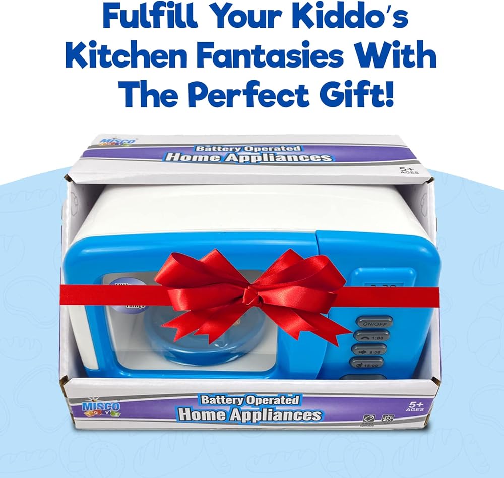 أجهزة مطبخ الميكروويف للأطفال من ميسكو تويز، مجموعة أدوات اللعب التظاهري بفرن الميكروويف للأطفال الصغار، مجموعة ألعاب أدوات الطبخ، أضواء وأصوات وظيفية حقيقية، للأعمار من 3 سنوات فما فوق (أزرق)