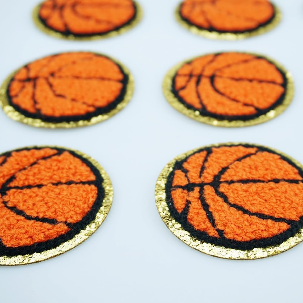 12 قطعة من رقعة كرة السلة بحواف ذهبية من قماش الشنيل لكرة السلة حديد على رقعة رياضية للحقائب والقبعة وإصلاح الملابس بنفسك من SaktopDeco