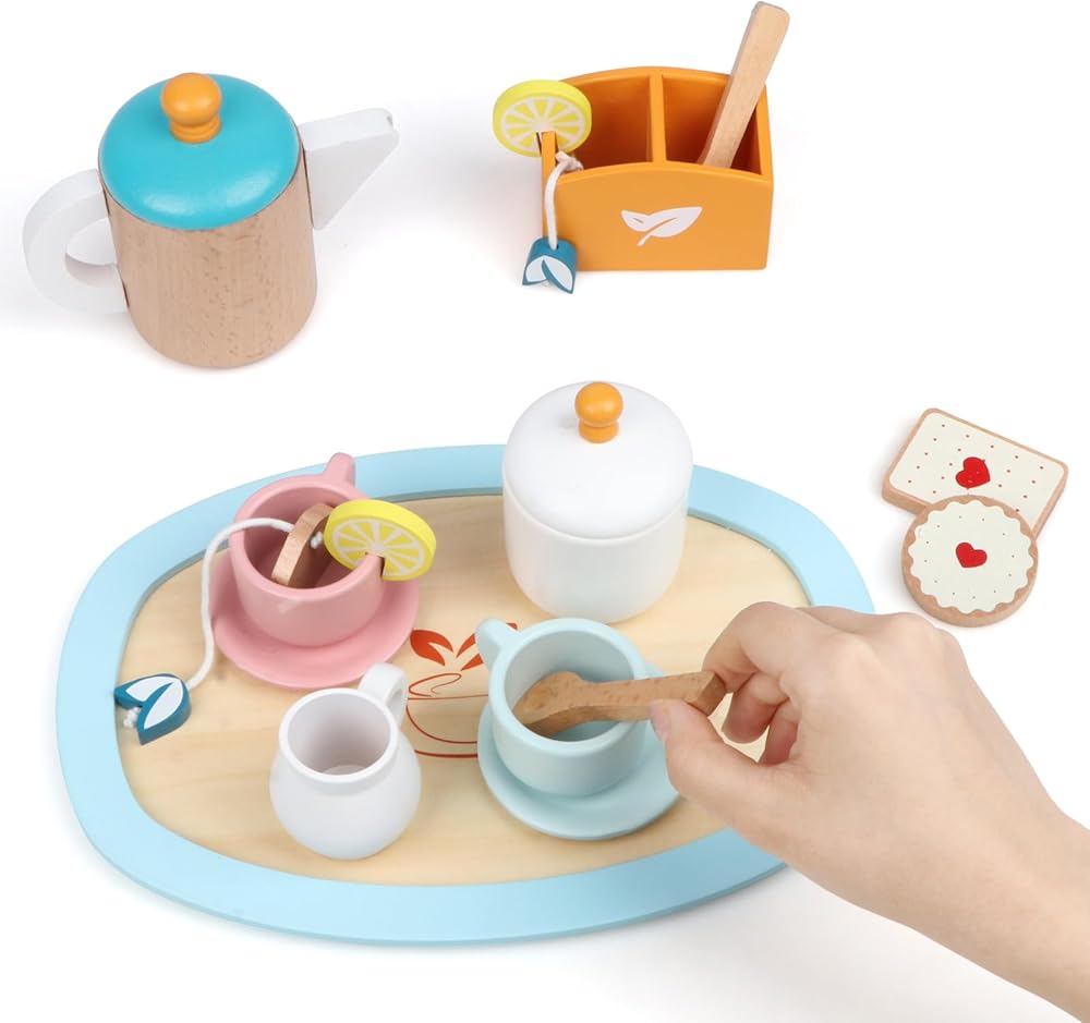 【اختيار الهدية】: مجموعة الشاي الخشبية هذه هي هدية رائعة لعيد الميلاد وعيد الميلاد للأطفال من سن 3 سنوات فما فوق. إنها مثيرة جدًا وتعليمية وآمنة وستعطي ابتسامة مشرقة لوجه طفلك الصغير اللطيف.
