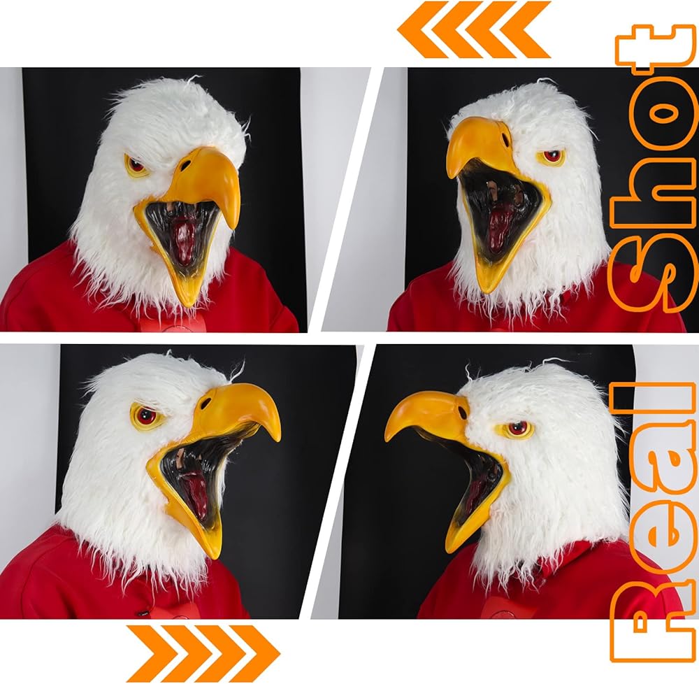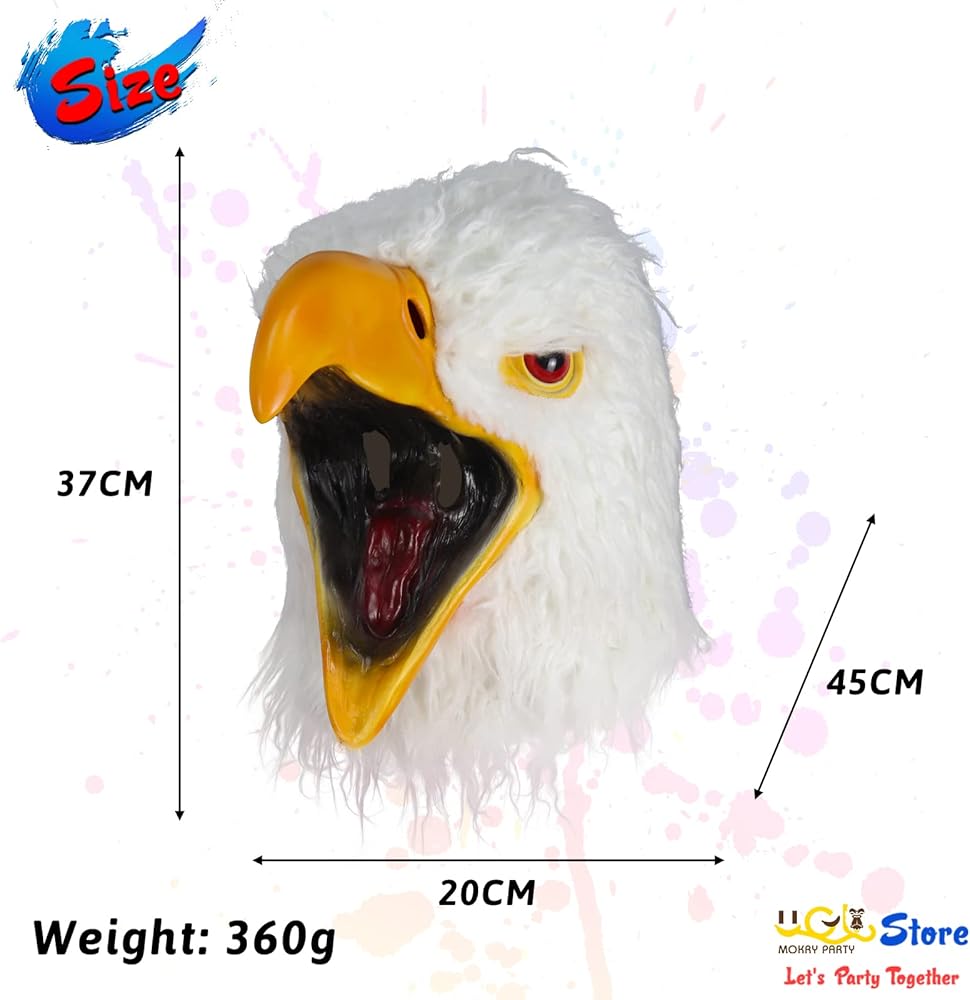 موكري بارتي قناع راس النسر الابيض على شكل طائر حيوان، قناع لاتكس مشعر، قناع تنكري للهالوين والكرنفالات