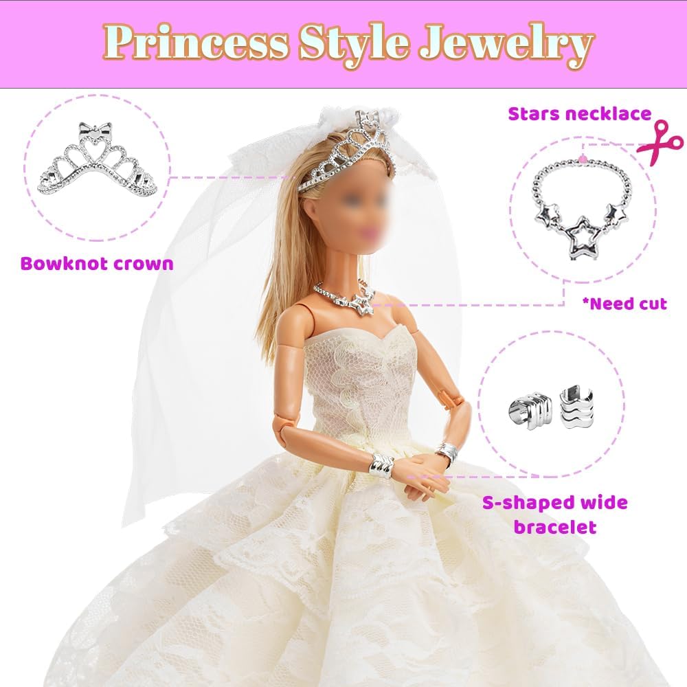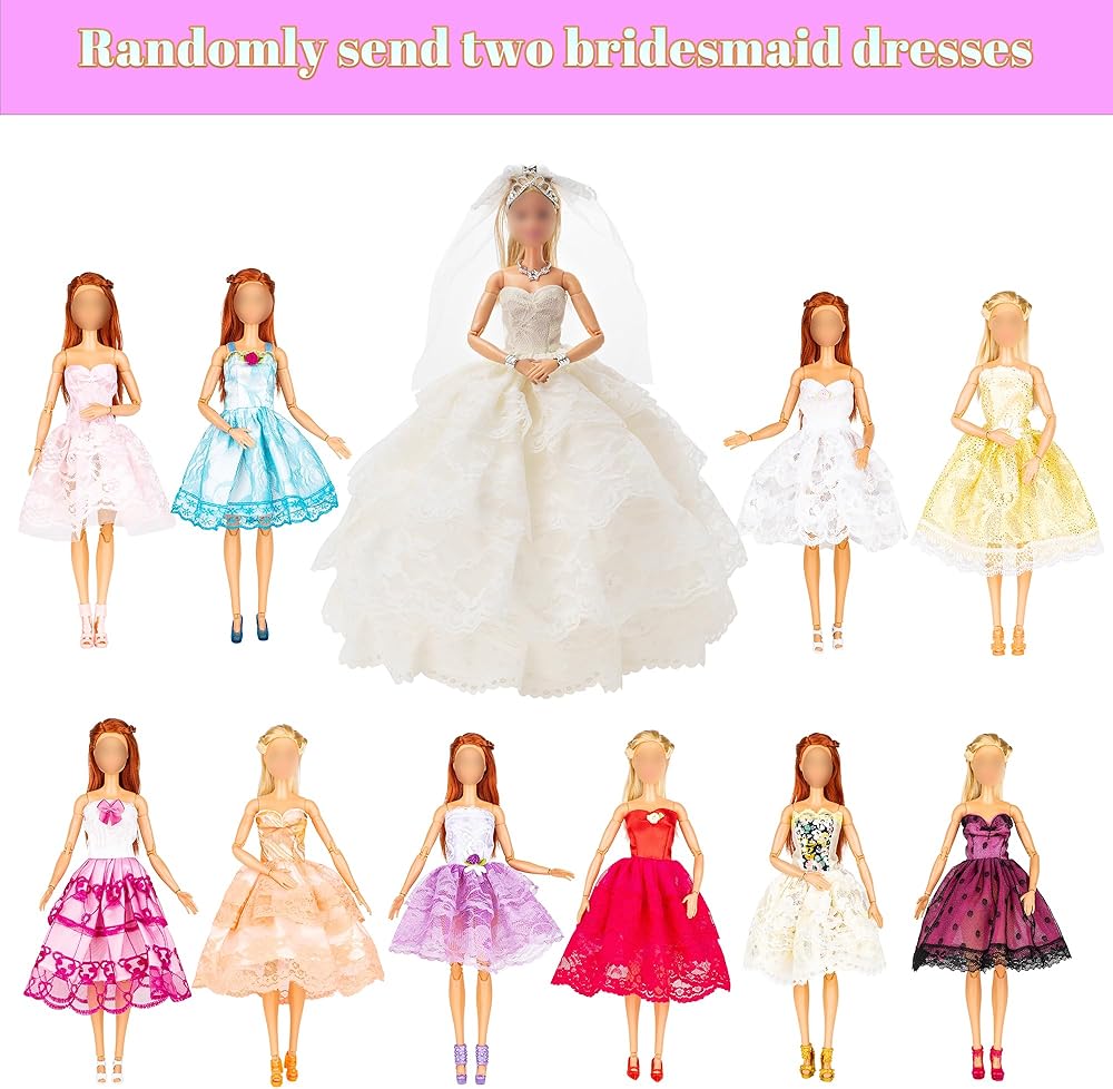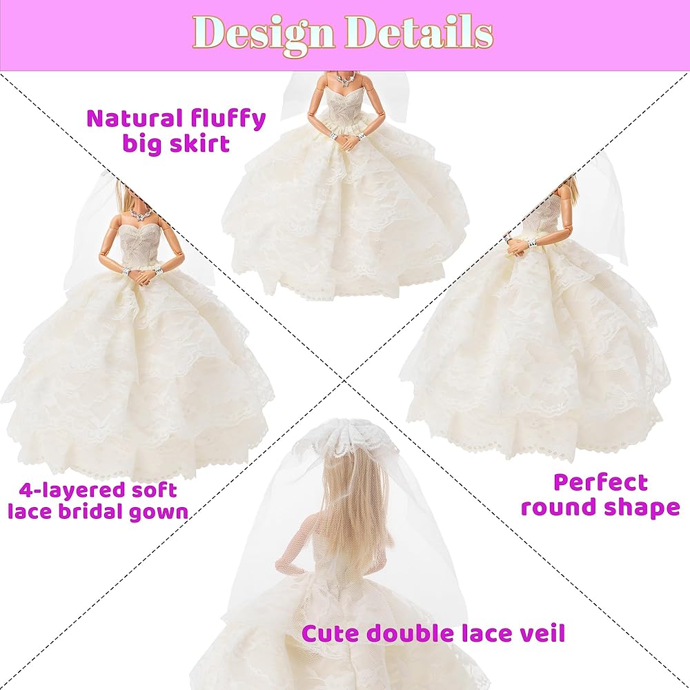 ✔ Three-dimensional Design – The wedding dress has an extra layer of thick gauze than ordinary wedding dresses, and the three-dimensional design is more special! Bridesmaid dresses are also at least two layers of lace. Heavy craft gives your doll the most gorgeous wedding ceremony.
