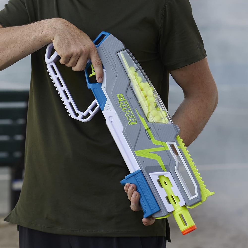 مسدس PUMP-ACTION NERF HYPER SIEGE-50: قم بضخ الشريحة لتجهيز الناسف واضغط على الزناد لإطلاق النار بسرعة تصل إلى 110 إطارًا في الثانية (تجهيز يعمل يدويًا - لا حاجة لبطاريات)