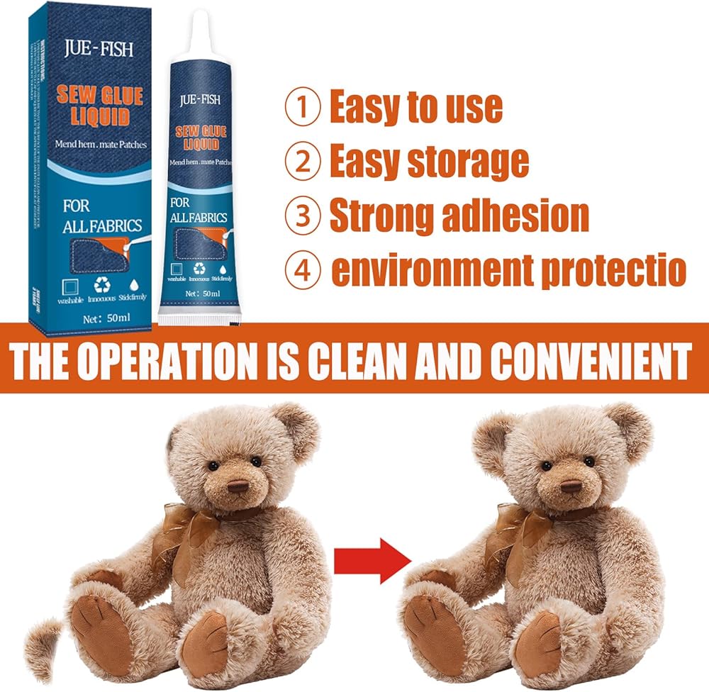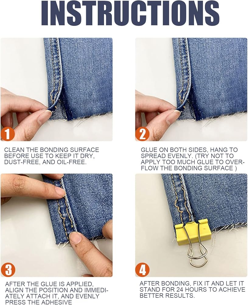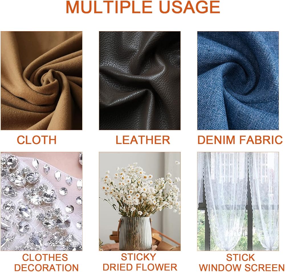 استخدام واسع: هذا الصمغ سريع الجفاف مناسب لإصلاح العديد من أنواع الأقمشة التالفة بما في ذلك القطن والكتان والدنيم والجلد وقماش الوجه واللباد والألعاب القطيفة وما إلى ذلك.