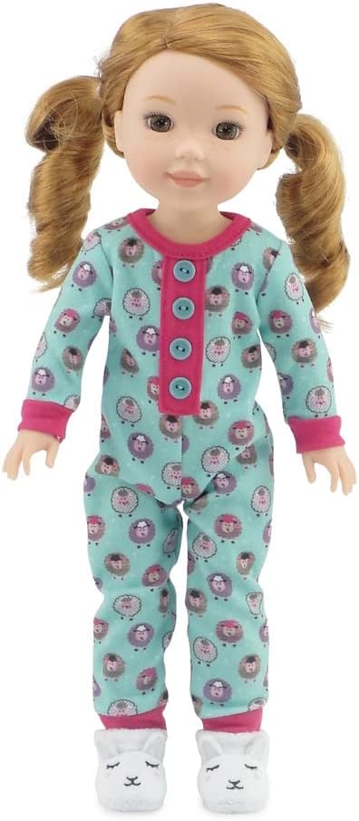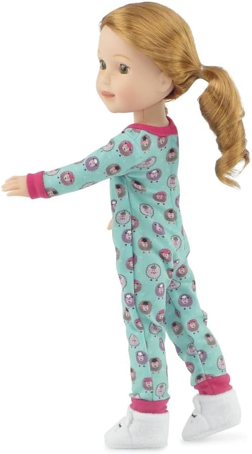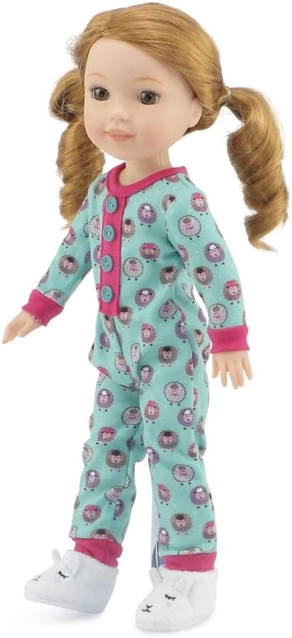 ملابس الدمى من ايميلي روز مقاس 14.5 انش، إكسسوارات ملابس الدمية بطباعة لحم الضأن، ملابس بيجامات بي جيه، بما في ذلك شبشب الدمية! ستنام دميتك مقاس 14 انش مثل الحلم في هذه المجموعة الجميلة المكونة من قطعتين من البيجامة الناعمة مقاس 14 انش، مثالية للنوم في منزل الجدة أو حفلة بيجامة مع الصديقات، طقم بيجامة الدمية الرائع مقاس 14 انش يتضمن "قطعة واحدة" بأكمام طويلة ومفتوحة مع قماش مطبوع على شكل خروف مرح وملون. تتميز البيجامات بإغلاق خلفي خاص "لا يمسك"، مما يجعل ارتداء الملابس أمرًا سهلًا! يأتي ملحق زي الدمية هذا مع زوج لطيف من شبشب وجه الخروف الأبيض الناعم والزغبي ينزلق على قدم الدمية بسهولة. يأتي زي دمية بي جيه هذا معبأ في صندوق هدايا ايميلي روز المحبوب الخاص بنا وهو مثالي للحفلة الليلية القادمة لدميتك مقاس 14 انش. هدية رائعة للكريسماس وعيد الفصح وعيد الحب والعطلات وأعياد الميلاد وأي مناسبة خاصة واللعب الخيالي اليومي! *الدمية غير متضمنة*