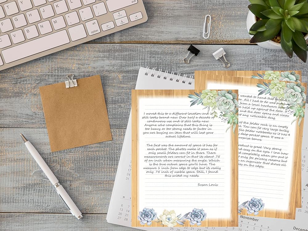 • حجم مثالي للقرطاسية - يبلغ مقاس الورق الثابت لورق الكتابة 8.5 11 انش؛ مغلفات إغلاق لاصقة بمقاس 4.7 و8.7 انش. الحجم مناسب للكتابة اليدوية والطابعة.