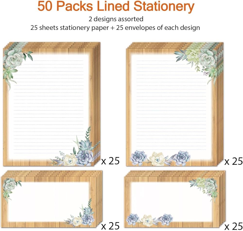 مجموعة قرطاسية مبطنة مع مظاريف 50 ورقة كتابة ثابتة و50 ظرف - 8.5 × 11 انش، مجموعة ادوات مكتبية من ورق كتابة الخطابات، 2 تصميم ادوات مكتبية متنوعة
