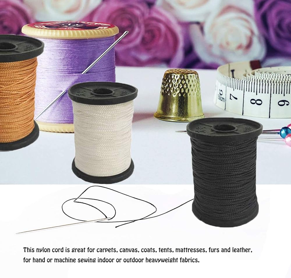 • خيط النايلون: هذا الحبل المصنوع من النايلون رائع للسجاد والقماش والمعاطف والخيام والمراتب والفراء والجلد، للخياطة اليدوية أو الآلية للأقمشة الثقيلة الوزن في الأماكن المغلقة أو الخارجية.