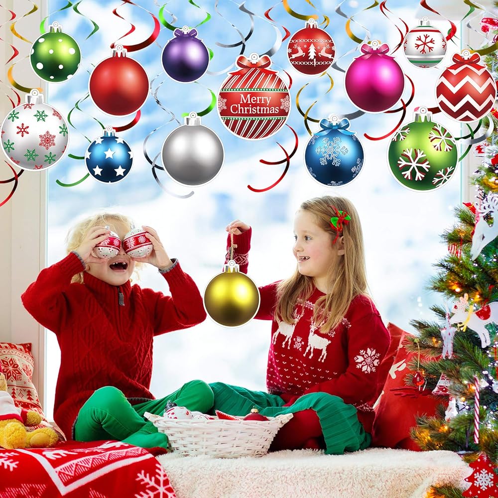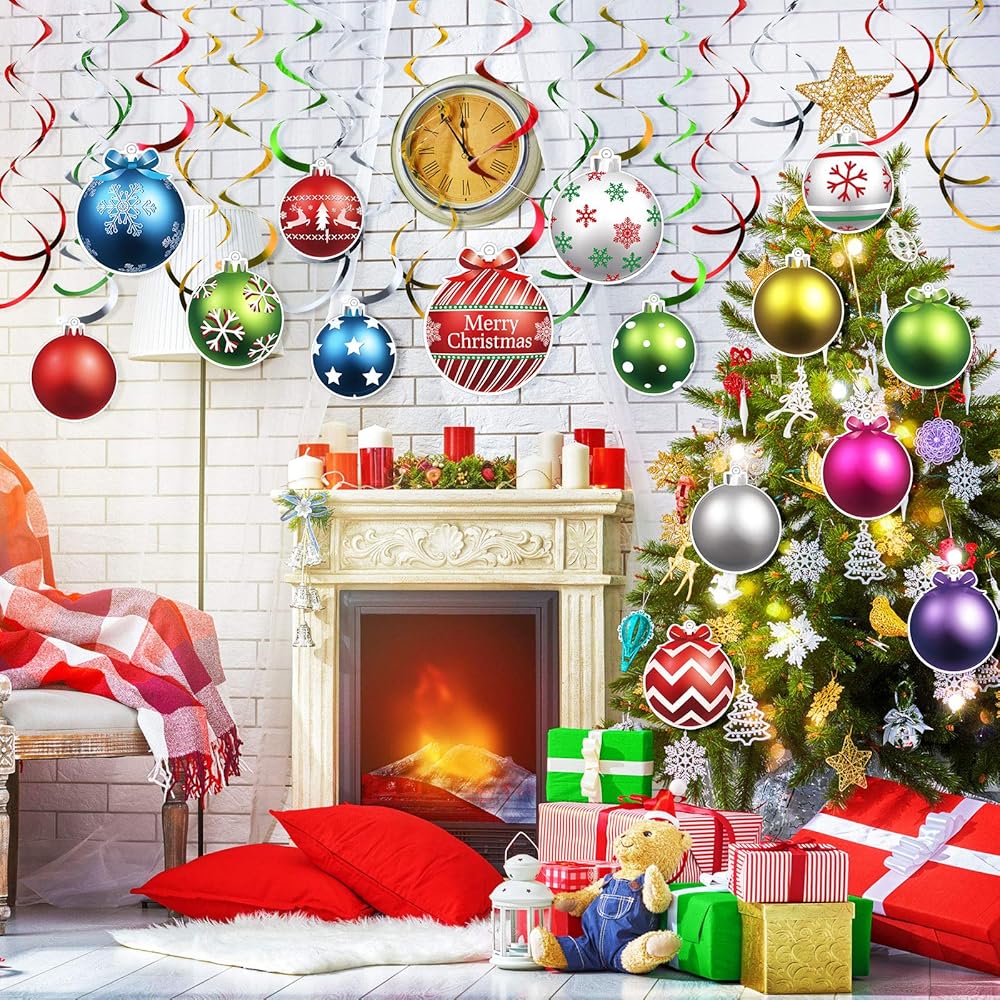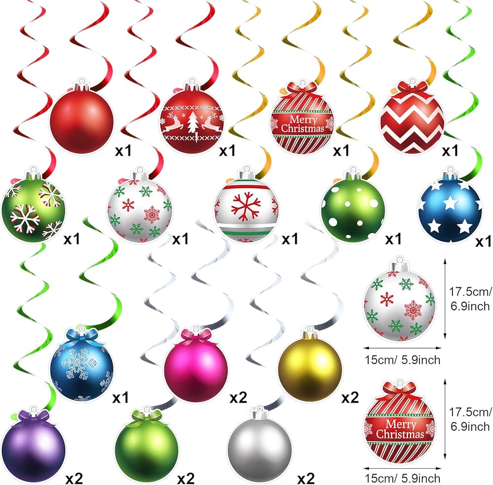 30 قطعة من مصابيح الكريسماس المعلقة على شكل كرة عيد الميلاد المجيد، دوامات معلقة لتزيين السقف في الأماكن المغلقة والمفتوحة، ملحقات تزيين حفلات الكريسماس
