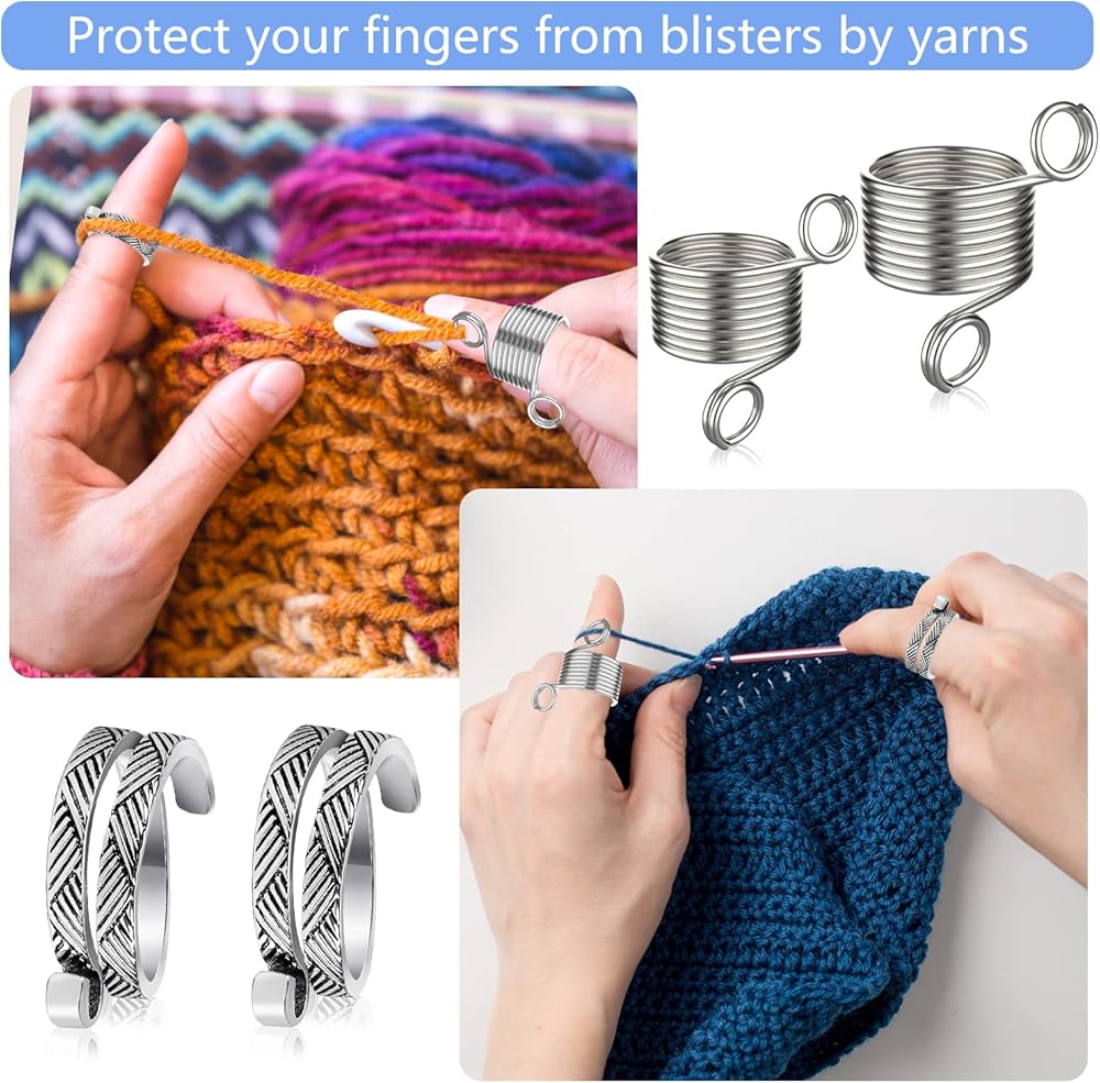 أدوات عملية: تعمل حوامل أصابع دليل الغزل المعدنية هذه بشكل رائع للحياكة والكروشيه، ويمكنها حماية الأصابع من البثور بواسطة الغزل، والحفاظ على شد الخيوط المتسق، وتسريع العمل بكفاءة. هدية لطيفة لمحبي الحرف اليدوية والمبتدئين