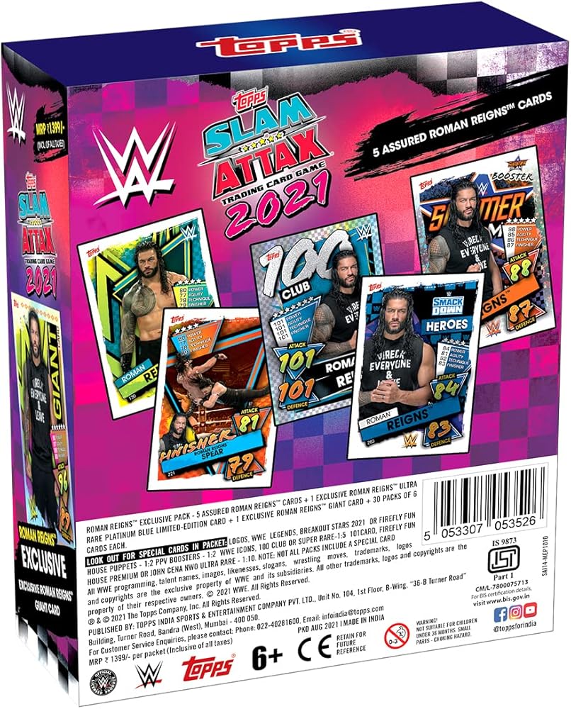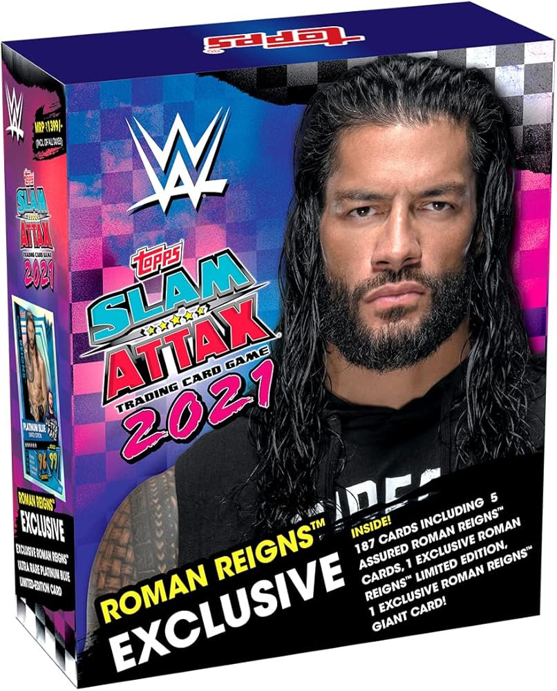 - تحتوي هذه العبوة أيضًا على 5 بطاقات مضمونة من رومان رينز وبطاقة رومان رينز ال اي الحصرية وبطاقة رومان رينز العملاقة الحصرية.