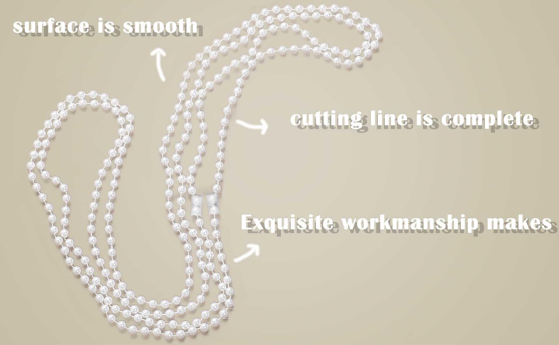 مظهر واقعي: قلادة خرز مصنوعة من مادة بلاستيكية عالية الجودة، السطح أملس وخط القطع كامل؛ صناعة متقنة تجعل قلادات اللؤلؤ هذه تبدو أكثر حيوية وواقعية