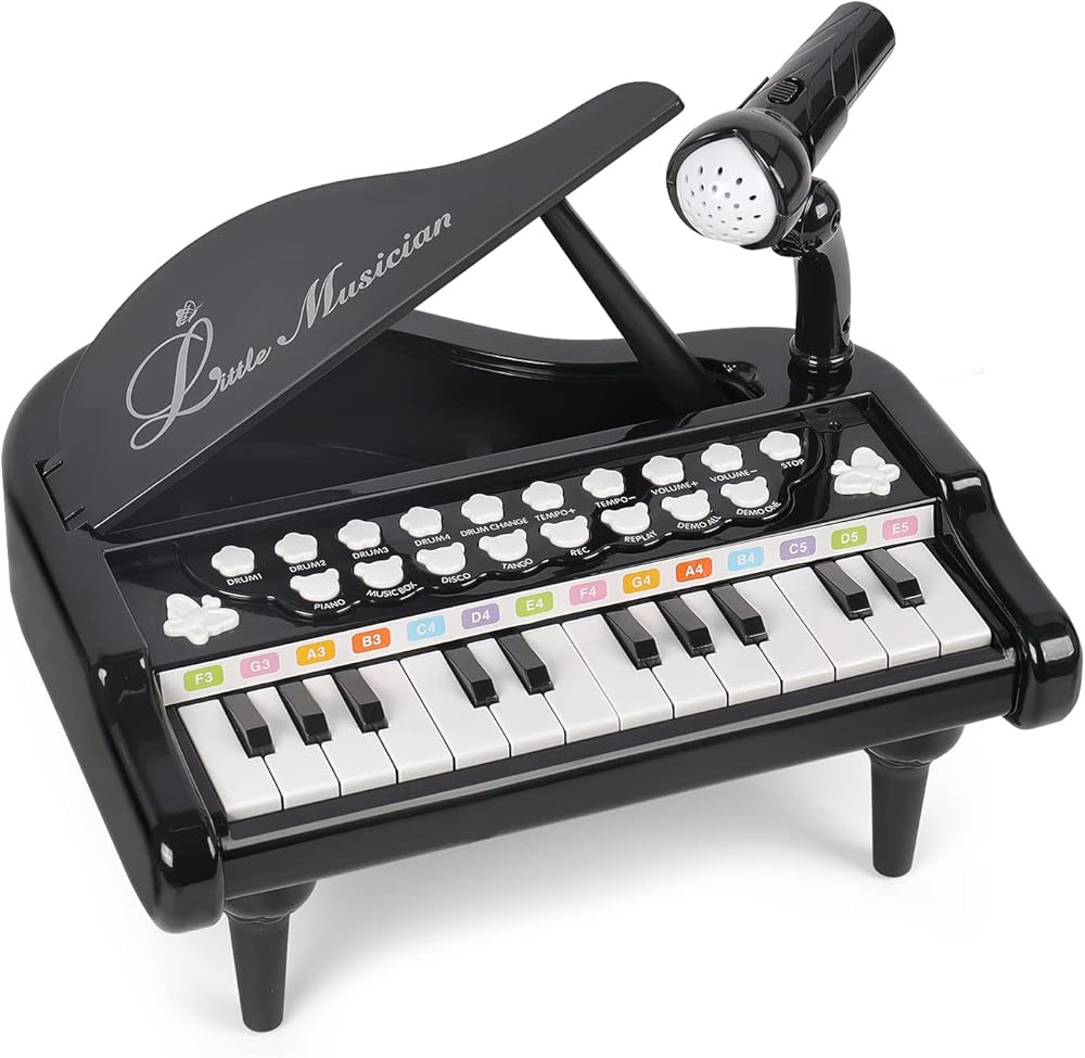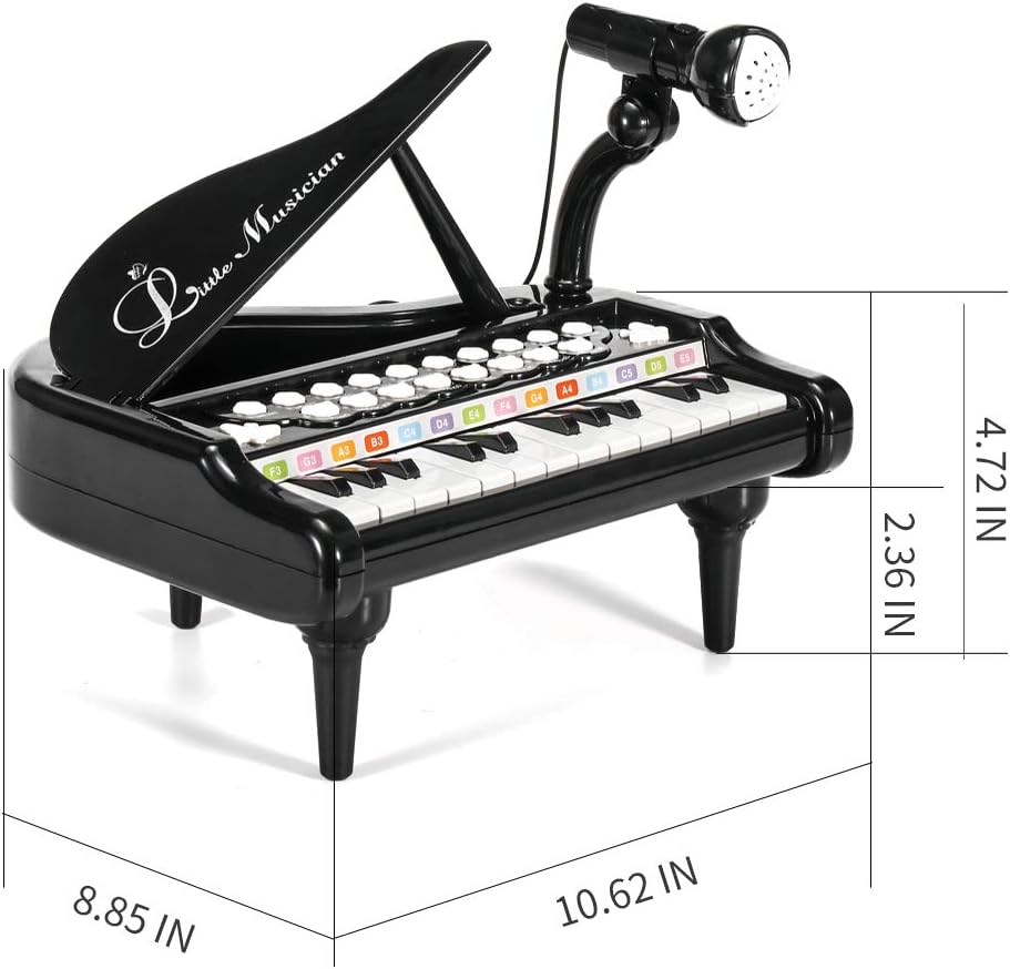 31 مفتاحًا - 31 مفتاحًا باللونين الأبيض والأسود، و4 مفاتيح للآلات الموسيقية، و4 أنماط للآلات الموسيقية، و8 تأثيرات صوتية للطبل (يتم تغييرها بالضغط على الزر Drum 4) وأكثر من ذلك بكثير. يمكن لهذه الآلة الموسيقية الصغيرة اللطيفة أن تجلب الكثير من المرح الموسيقي لطفلك.