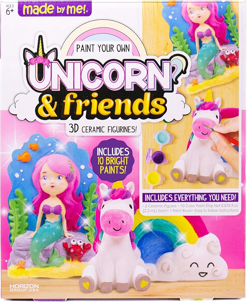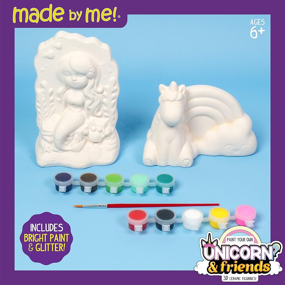 صمم شخصيات سيراميك غريبة الأطوار بألوان نابضة بالحياة وأنماط ممتعة تجعل كل مخلوق ينبض بالحياة مع مجموعة ميد باي مي Unicorn & Friends! استكشف المصمم الداخلي الخاص بك وأنت ترسم تفاصيل معبرة لجعل كل شخصية مميزة. تعلم عملية مزج الألوان لخلق درجات ألوان جديدة لجعل التفاصيل الخاصة بك بارزة! اعرض مجسمات السيراميك الفريدة من نوعها بفخر لتعزيز ديكور غرفتك أو إنشاء هدايا شخصية للأصدقاء! يوصى بها للأعمار من 6 سنوات فما فوق.