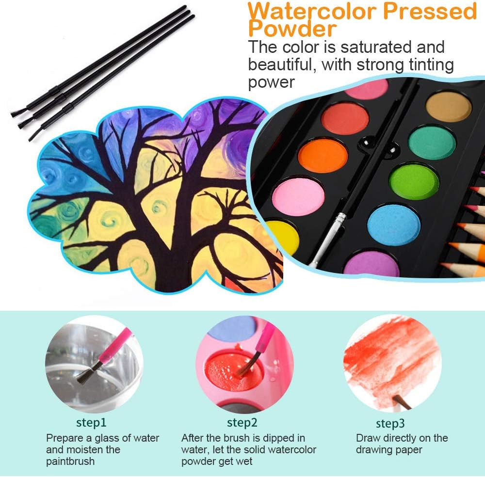 آمنة وصديقة للبيئة: مجموعة الرسم والتلوين هذه مصنوعة من مواد صديقة للبيئة. كل أقلام تلوين وأقلام رصاص وباستيل في هذا الصندوق الفني غير سامة، وتتوافق مع ASTM D4236 (ممارسات قياسية لوضع العلامات على المواد الفنية للمخاطر الصحية المزمنة). لا يسبب ضررًا للأطفال، يرجى الاطمئنان عند الاستخدام.