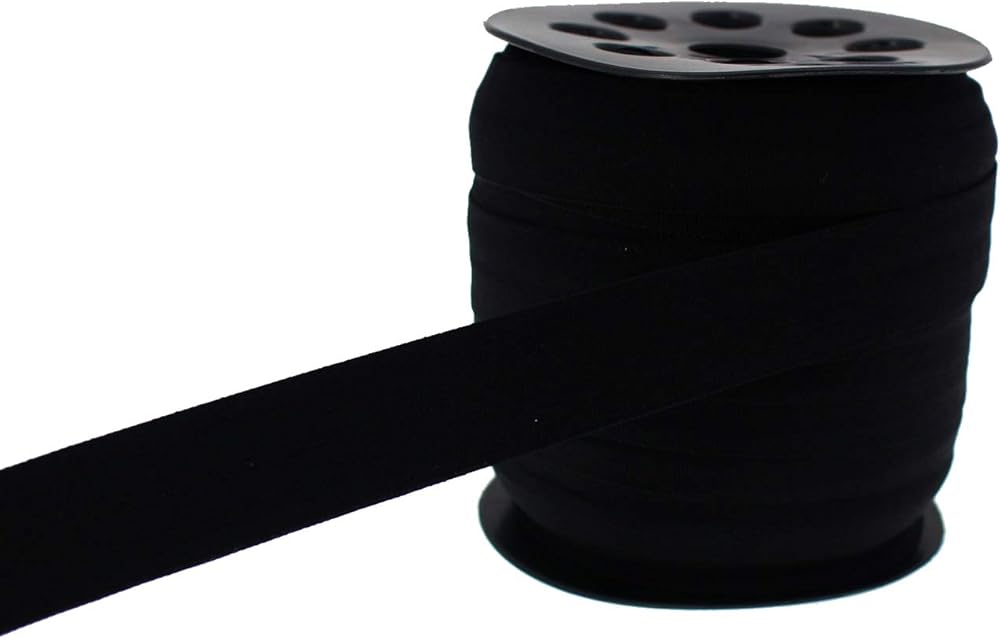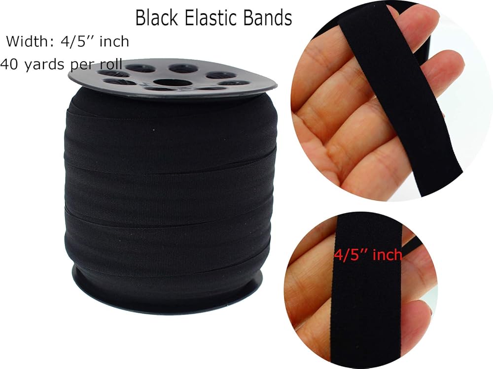 شريط مطاطي بطول 40 ياردة مقاس 4/5 بوصة قابل للطي فوق شريط مطاطي شريط ربط من نسيج الدانتيل للخياطة والحرف اليدوية (01 أسود)