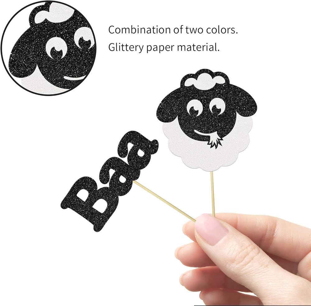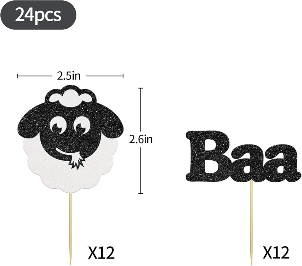 المقاس: 12 قطعة " خروف " أعلى كب كيك؛ 12 قطعة " Baa " أعلى الكعك.