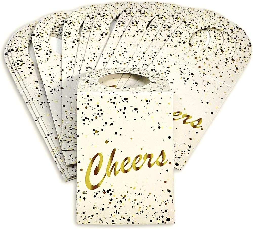 علامات زجاجات النبيذ ستجعل أي هدية أكثر تميزًا. زجاجة النبيذ هي الهدية المثالية للعديد من المناسبات. احتفل بالأوقات الجيدة مع أولئك المقربين منك من خلال إضافة تلك الرسالة الخاصة..."تشيرز"