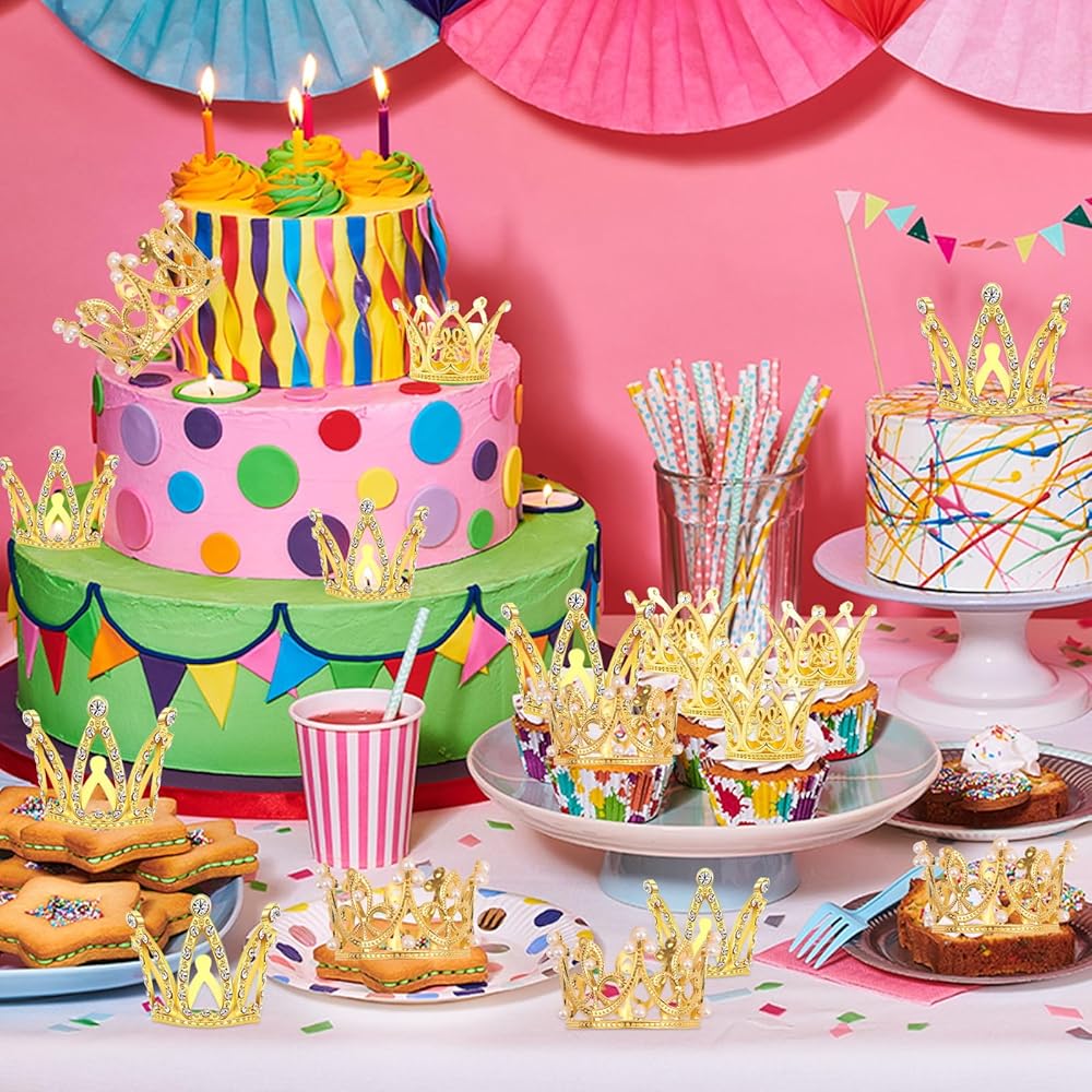 👑【هدية ممتازة】المظهر المتلألئ لأغطية الكعكة ذات التاج الذهبي يحبه الأطفال والفتيات والأولاد والنساء، فهي هدايا رائعة للأصدقاء والأطفال والعائلة، ومناسبة لحفلات الزفاف وحفلات استقبال الأطفال وحفلات أعياد الميلاد وما إلى ذلك.